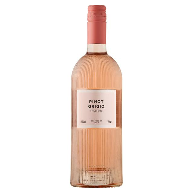 Product details Description Pinot Grigio Friuli Rose 2022 Denominazione Di Origine Controllata This elegant rosé comes from the beautiful Friuli region of northeast Italy. On the nose there are hints of summer hedgerow flowers and alluring flavours of succulent strawberry, juicy raspberry and refreshing cranberry. Nutrition Table of Nutritional Information Typical Values Per 100ml Per 125ml glass % based on RI for Average Adult Energy 302kJ 377kJ 4% 73kcal 91kcal 5% RI= Reference intake of an average adult (8400 kJ / 2000 kcal) Dietary Information Health Alcohol Country of Origin Size Storage Packaging Manufacturer Address Customer rating (10)