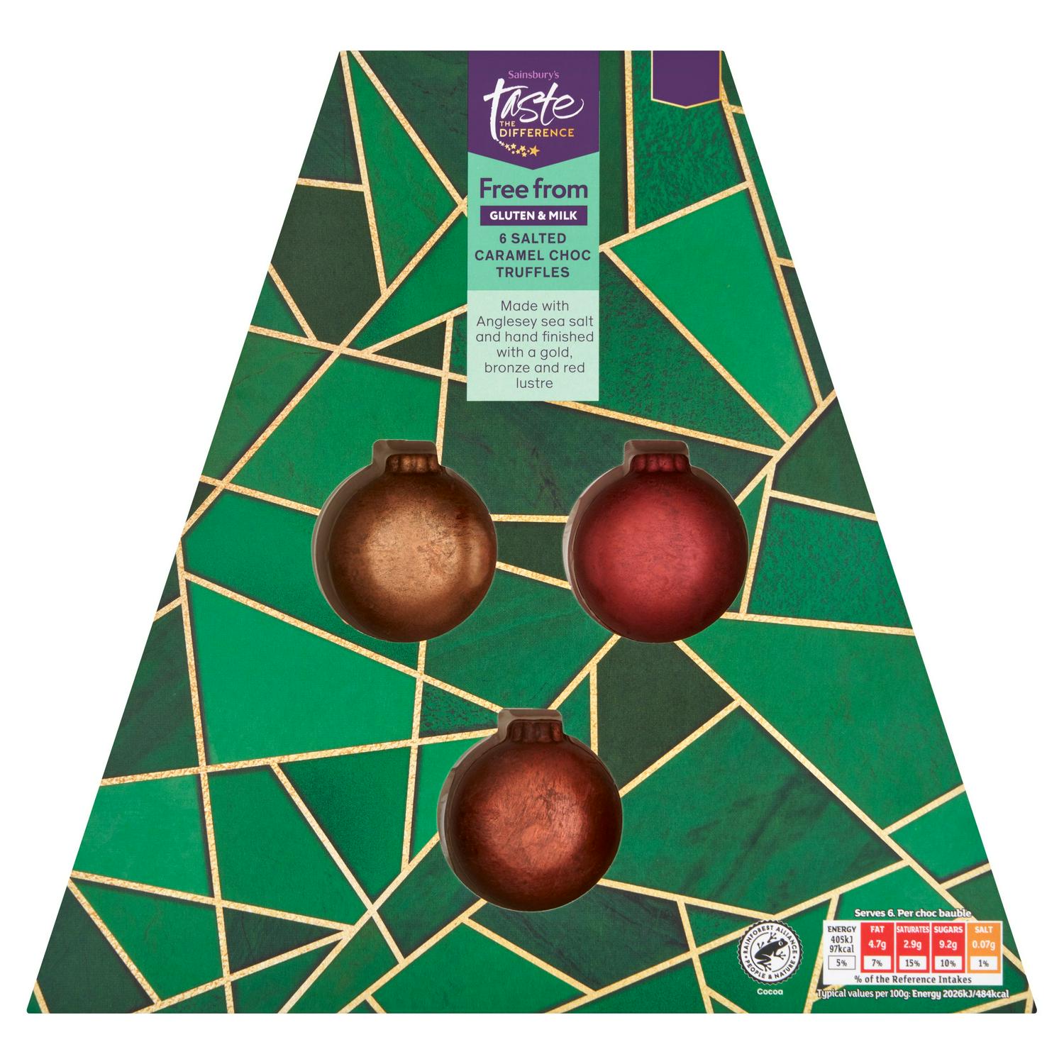 Enjoy these delightful Taste the Difference Salted Caramel Choc Truffles, presented in a pack of six luxurious pieces. Each truffle features a rich caramel centre enhanced with authentic Anglesey sea salt. These chocolates are carefully crafted using rice syrup, inulin, and rice flour for texture.