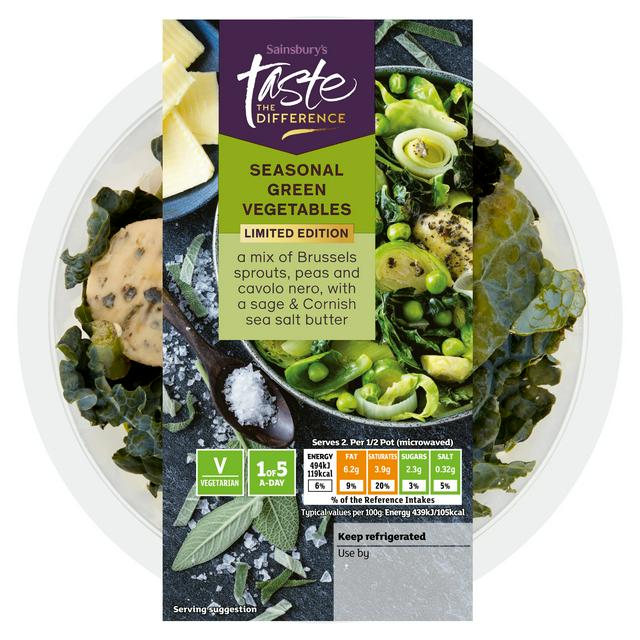 This Taste the Difference seasonal offering combines essential autumn vegetables for an easy preparation side dish. It features a medley of Brussels sprouts, vibrant peas, tender leeks, and nutritious cavolo nero. Each generous portion is finished with a rich butter dressing flavoured distinctively with aromatic sage and genuine Cornish sea salt.