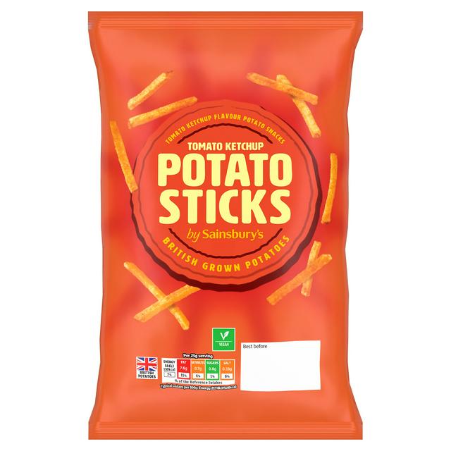 These crispy potato sticks deliver the classic, tangy flavour of tomato ketchup in a satisfying snack format. Crafted using potatoes grown in Britain, this 150g bag is ideal for casual enjoyment. The product contains a blend of rapeseed and sunflower vegetable oils for a quality crunch. Review the provided nutrition guide for detailed reference intake values per serving.