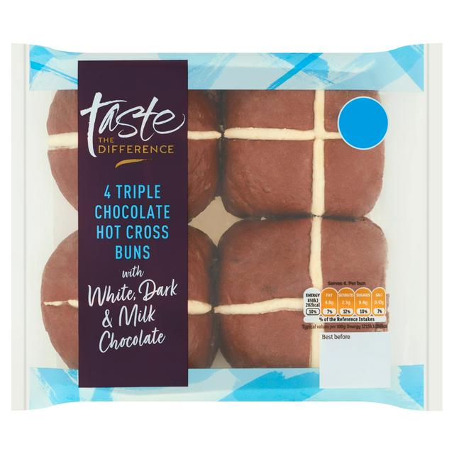 Sainsburys Triple Chocolate Hot Cross Buns Taste the Difference x4 280g