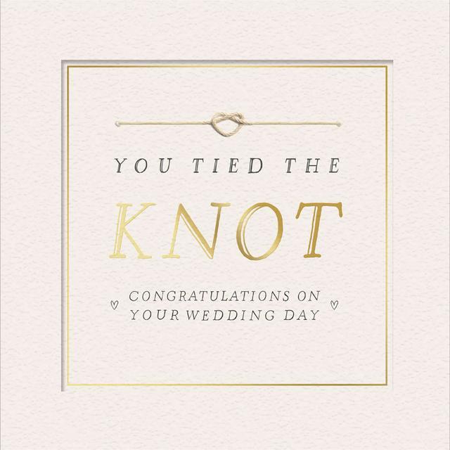 Product details Description The front of the card reads: ""You Tied the Knot Congratulations on Your Wedding Day"" Message inside reads: ""With Love"" • This card comes with an envelope. • Card measures: W 15.9cm x H 15.9cm. • Printed Paper & Card. • 1 x Greeting Card with envelope.... Read More