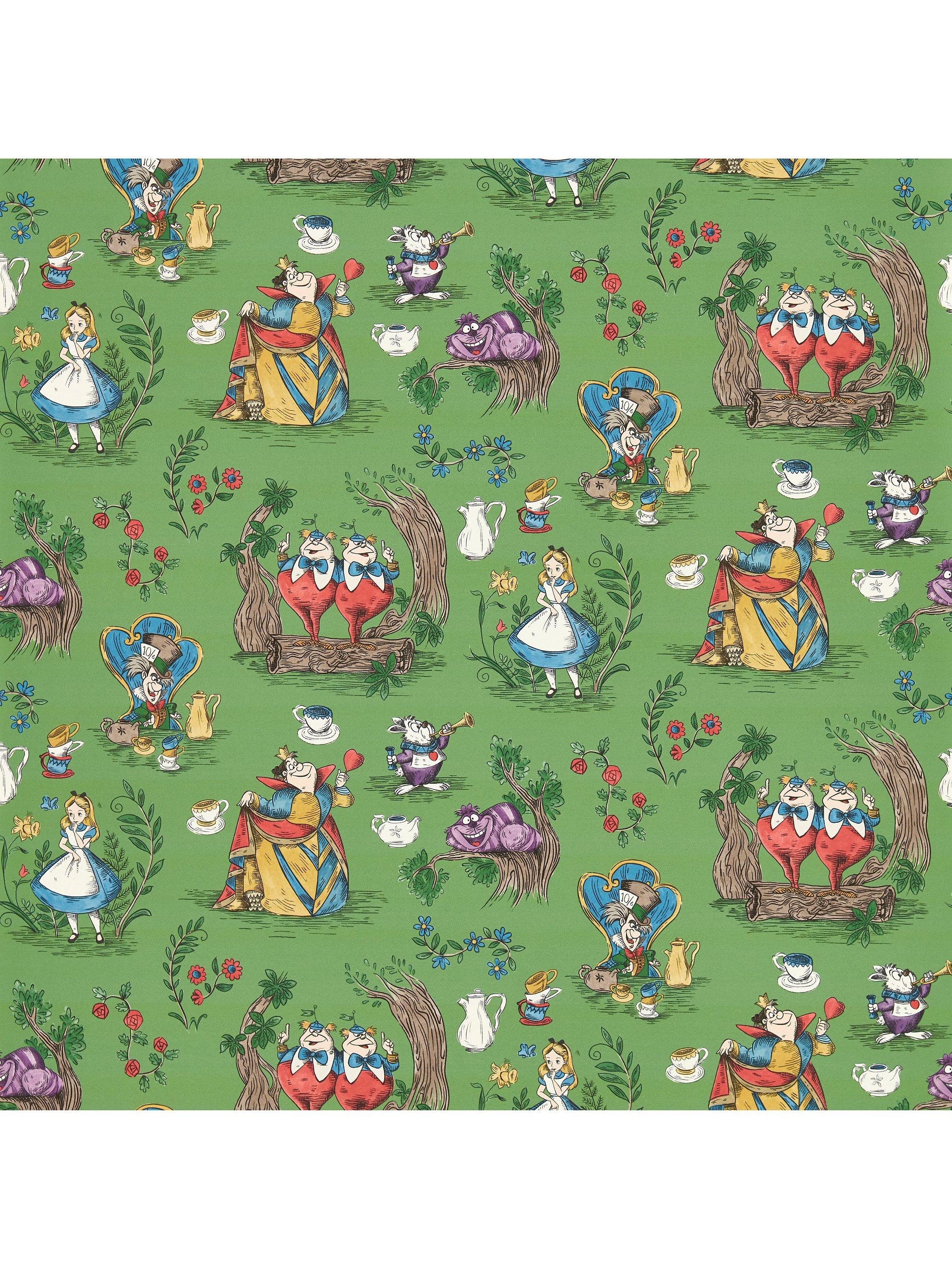 Sanderson presents this exquisite Alice In Wonderland Wallpaper, featuring classic Disney characters woven into a magical design. This decorative wall covering captures the whimsy of Wonderland through detailed, quality printing. It transforms any space into an enchanting environment suitable for any room in the home.