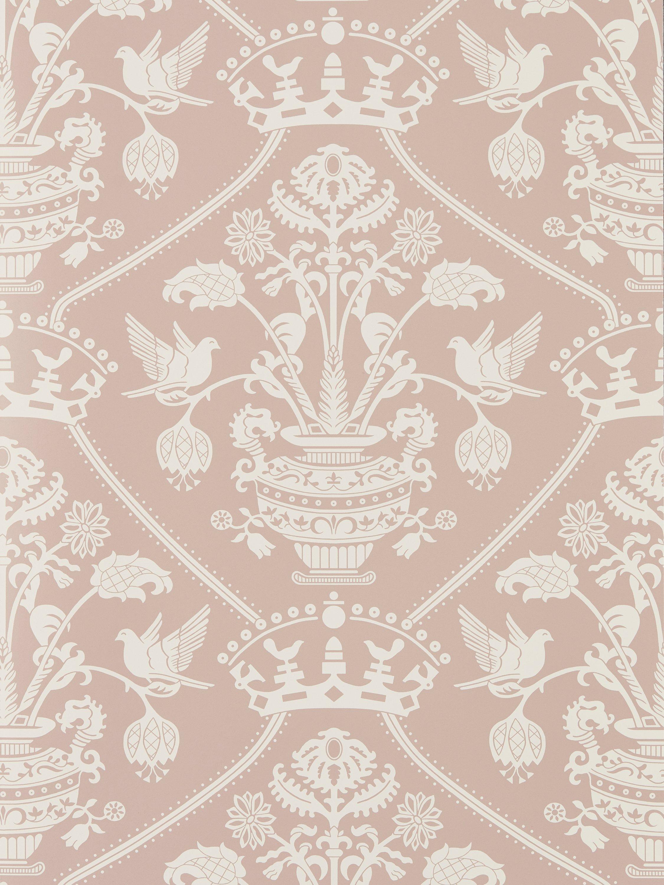 Originating from an archive document, Highgrove Damask has been designed incorporating the Highgrove Crest and peaceful doves. The wallpaper has been rotary printed to retain a smart, chalky matt finish and opaque ink coverage.