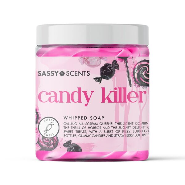 This Sassy Scents Candy Killer offers a unique blend of sweet and thrilling aromas. Its fragrance profile features fizzy bubblegum bottles, gummy candies, and strawberry lollipops for an engaging sensory experience. The product uses an innovative air whipped formula suitable for versatile application.