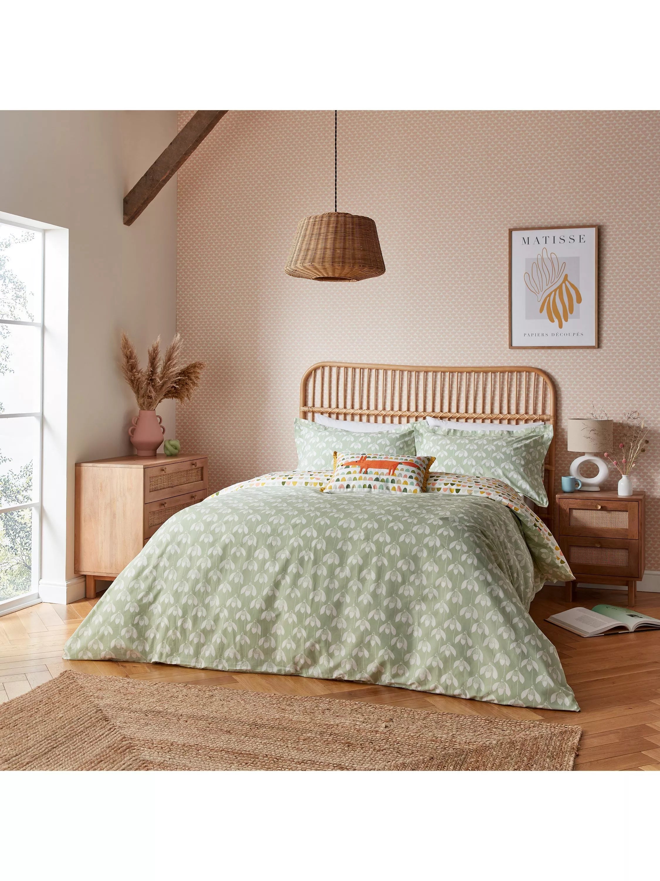 As the first flowers you'll see in spring, snowdrops mark the coming of good times and happy vibes. Rows of these plucky blooms are featured against a sage background, perfect for introducing a refreshing garden hue to your bedroom. Made with 100% cotton from the Better Cotton Initiative, the set comes with a pair of matching Oxford pillowcases.