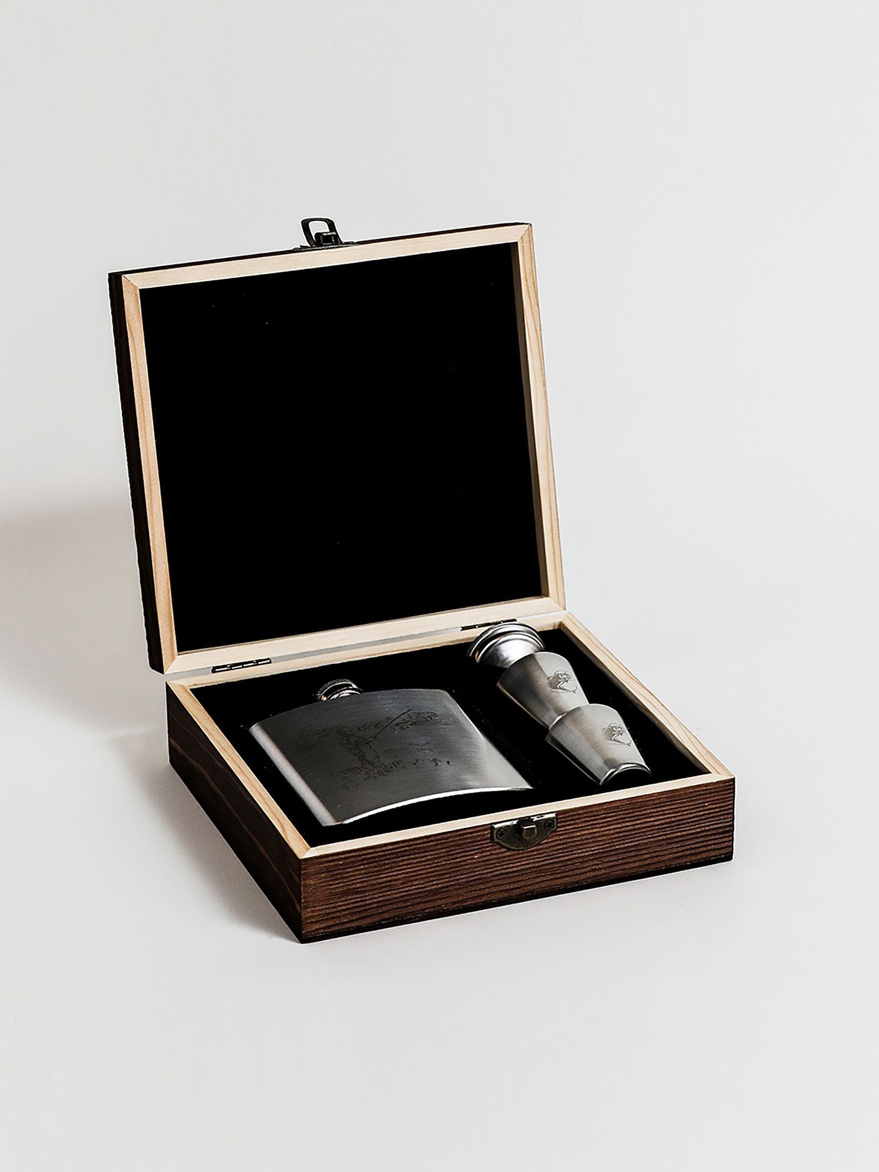 This set includes a high-quality stainless steel hip flask with a secure screw cap lid, a mini pouring funnel, and two matching cups, all carefully engraved with a fishing design. Presented in a beautifully designed wooden gift box, making it the perfect gift for any occasion, from birthdays to weddings, or as a special treat for groomsmen.