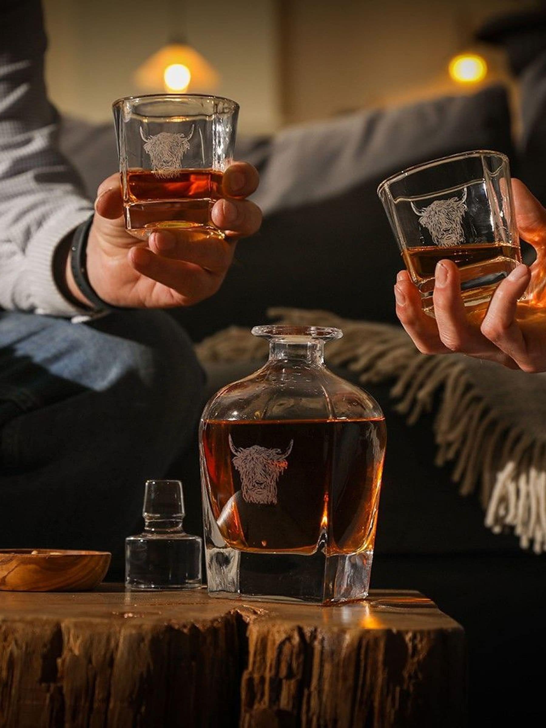 Immerse yourself in the rustic charm of the Highlands with our Highland Cow Decanter & Glass Set, showcasing a delightful Highland cow engraving on each glass tumbler and the decanter. This set infuses a sense of natural charm into your drinking rituals. Crafted to combine style with practicality, this set... Read More