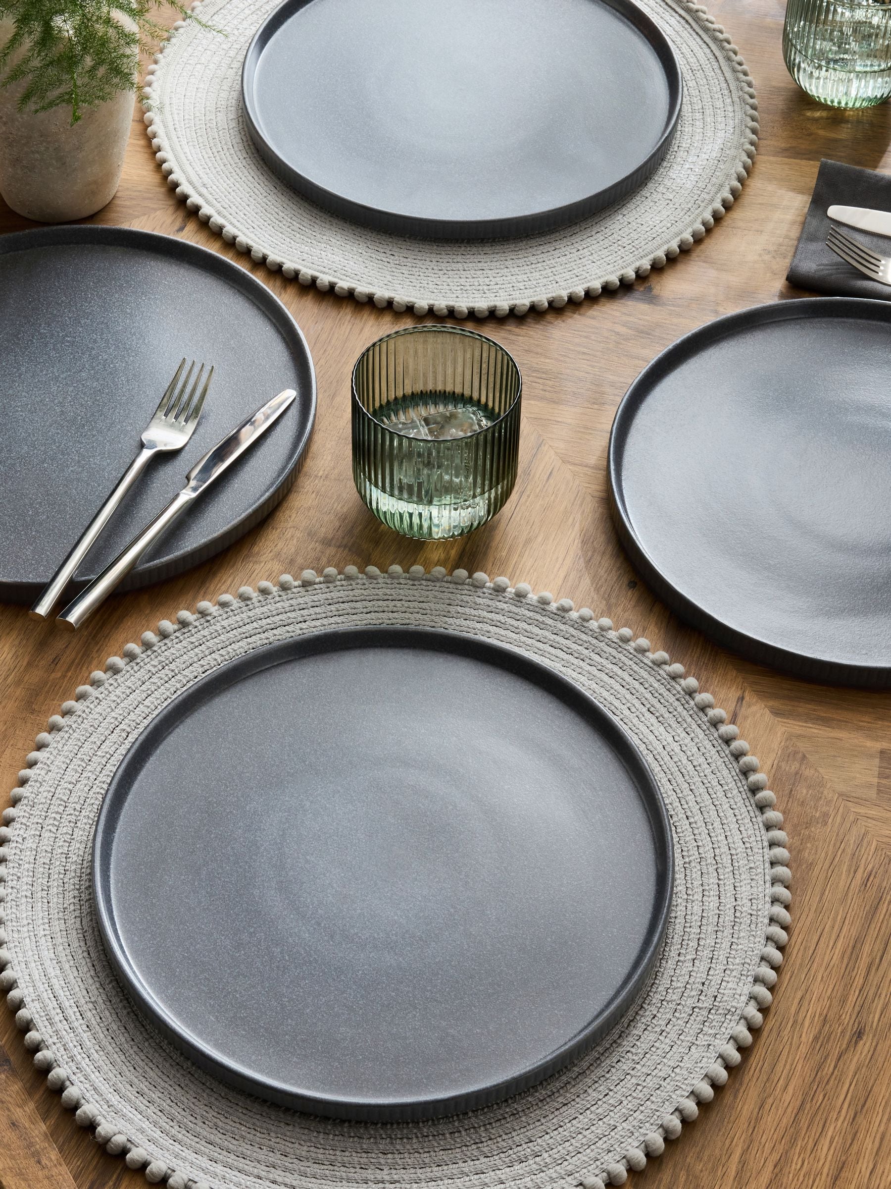 Set of 4 Charcoal Grey Stamford Dinner Plates