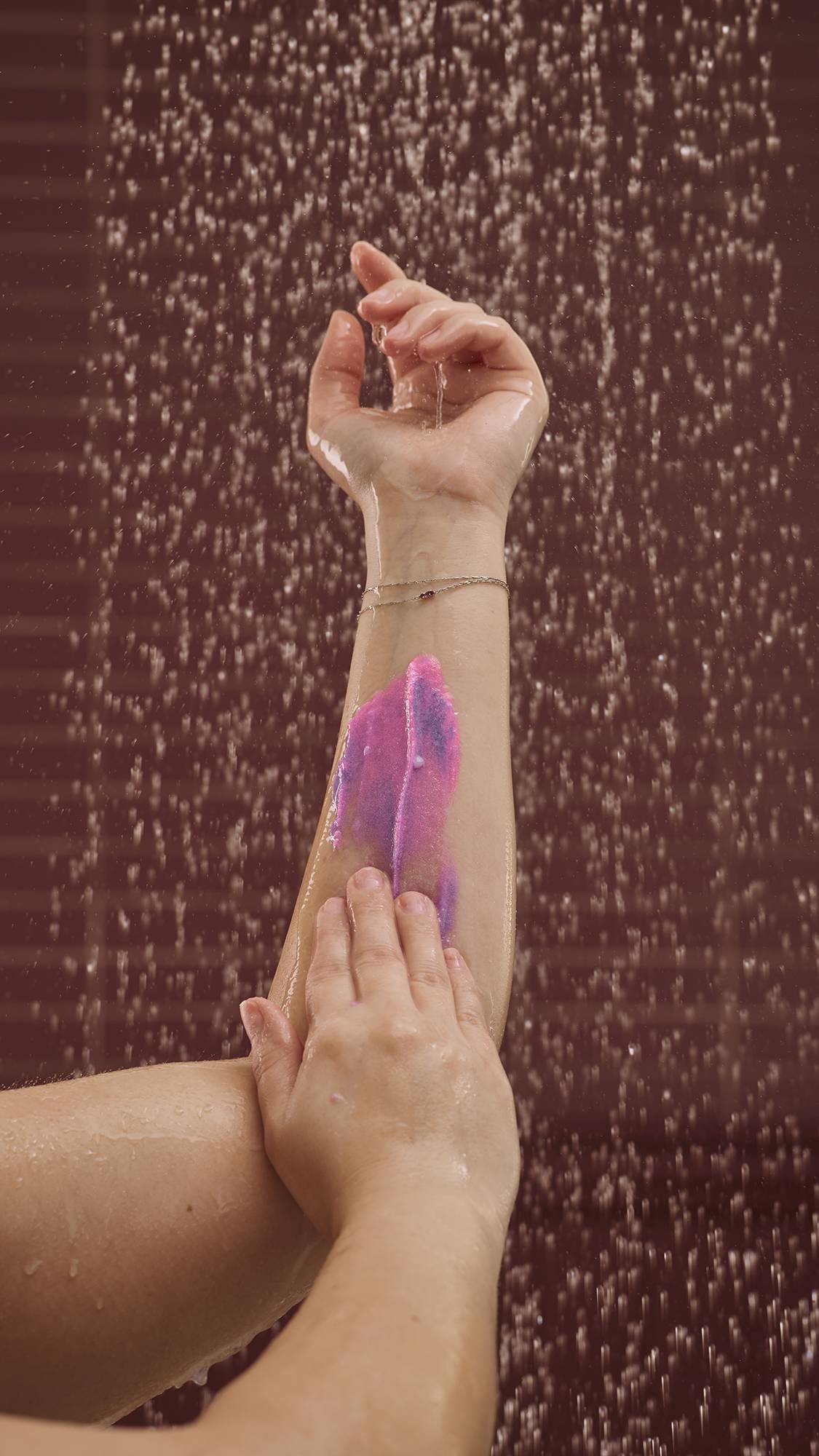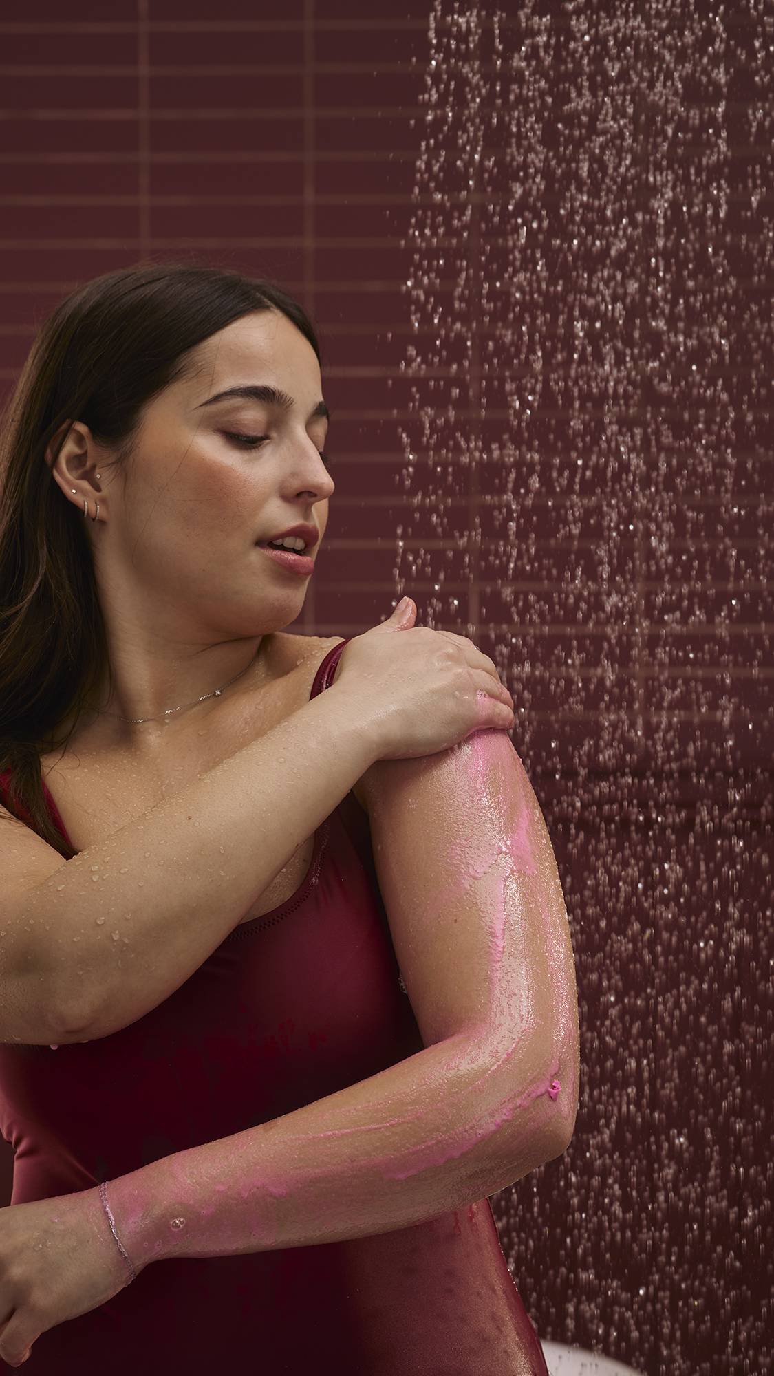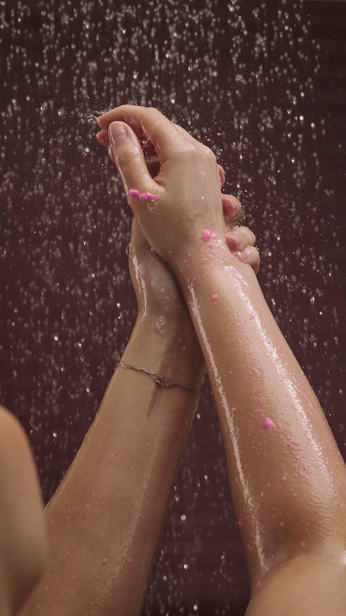 Under warm water, grab a spare pair of hands and massage into wet skin and buff all over before rinsing off. Warning: you may have people falling at your feet after this...