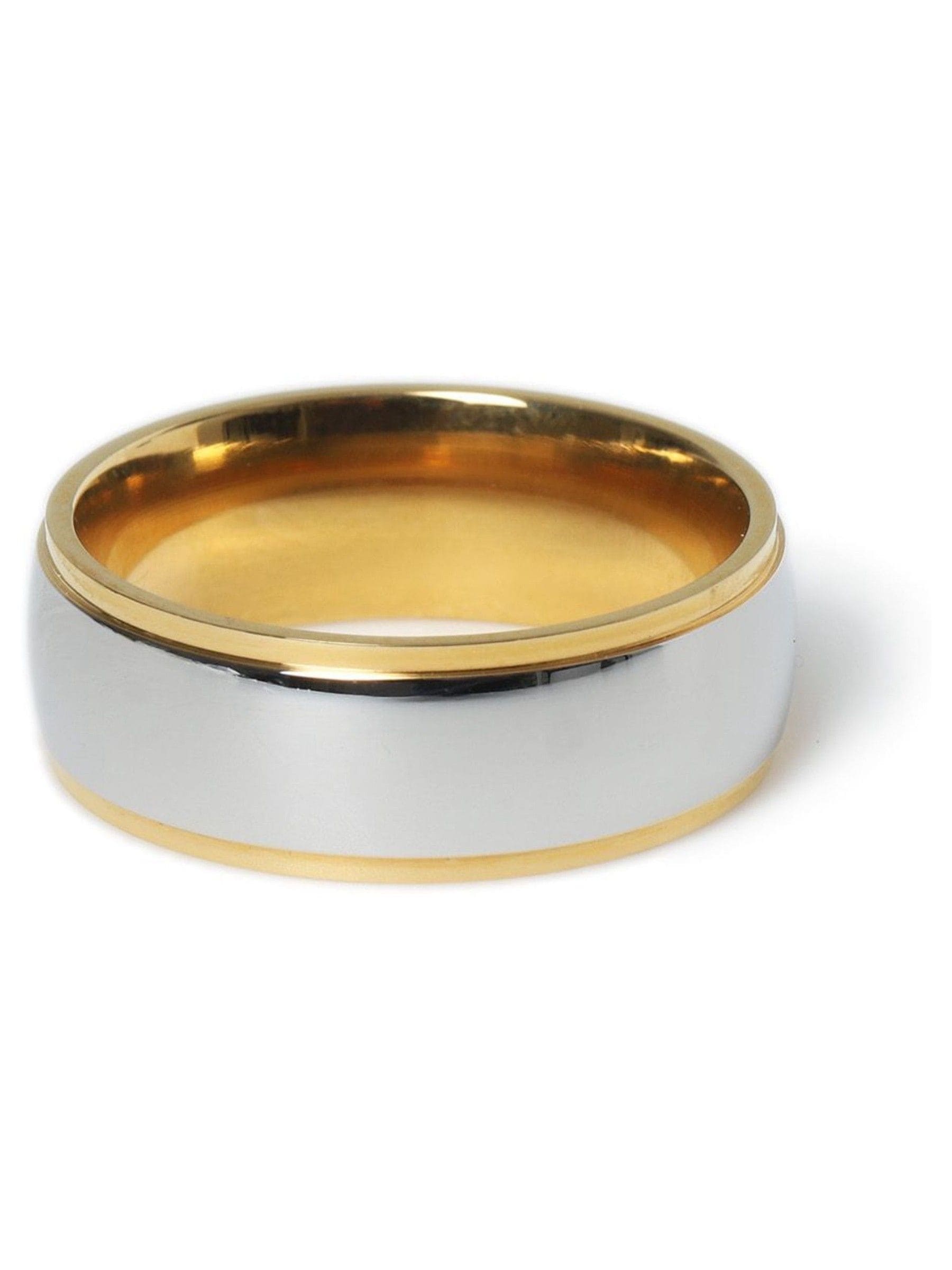 Silver Tone Stainless Steel Two Tone Band Ring