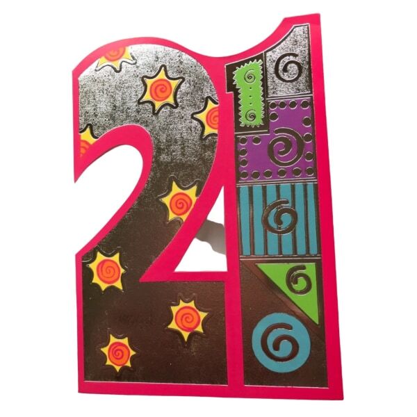 material card height 185cm length 135cm design cut out spiral spotted stripe detail contents 1 envelope occasion 21st birthday