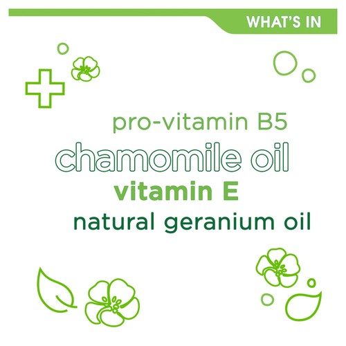 • Contains natural chamomile and geranium oil for enhanced skin nourishment.