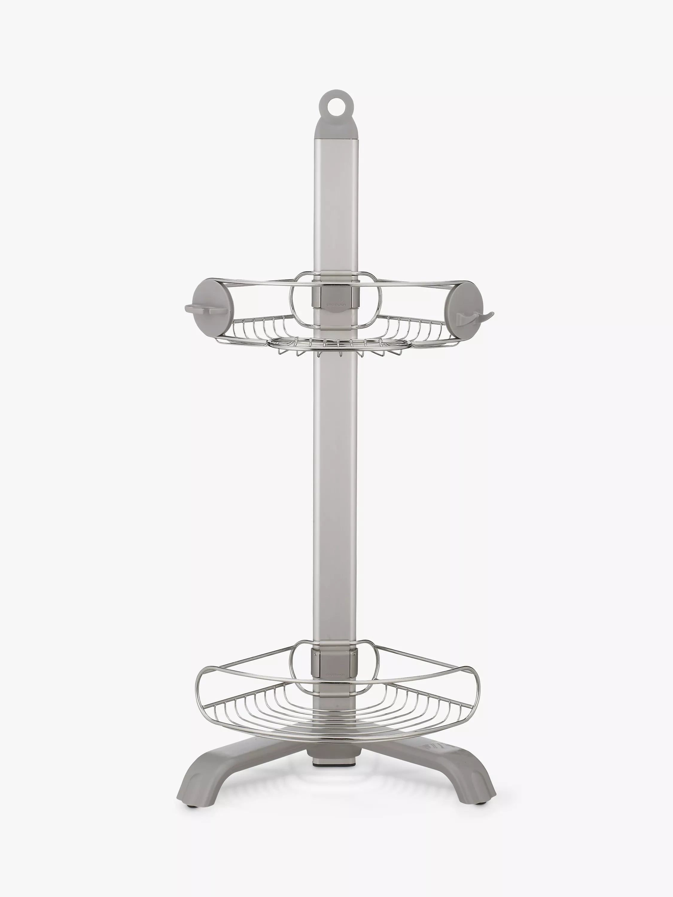 The simplehuman corner shower caddy is adjustable to make room for tall bottles, simply flip the tabs and slide the shelves up or down.