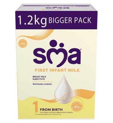SMA® First Infant Baby Milk is a nutritionally complete* breast milk substitute.