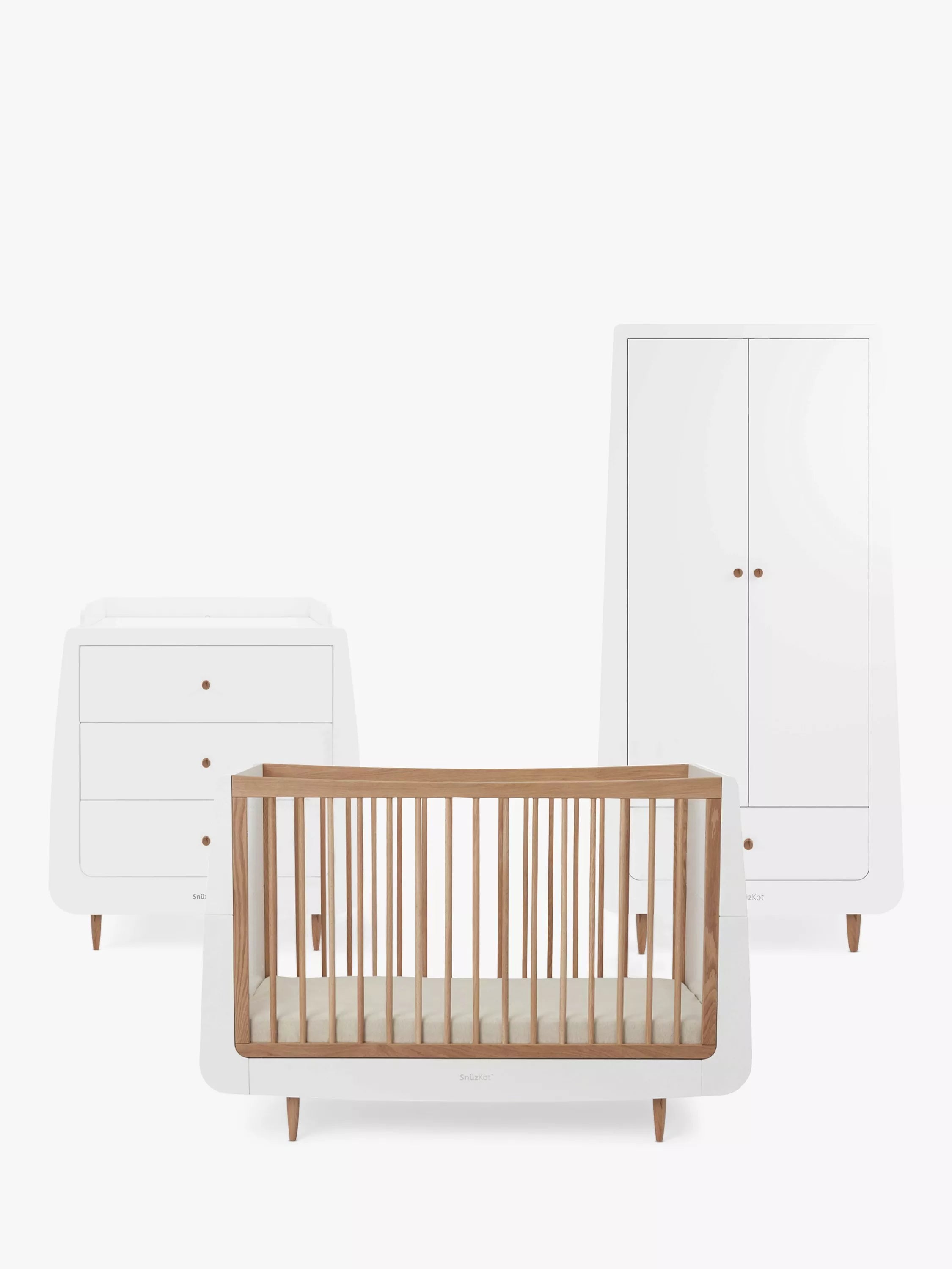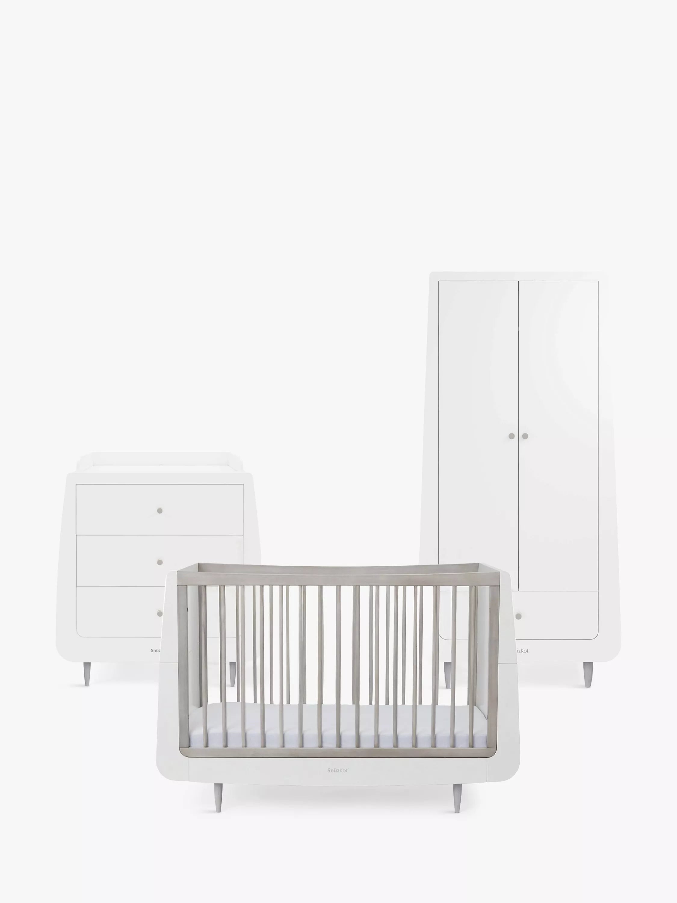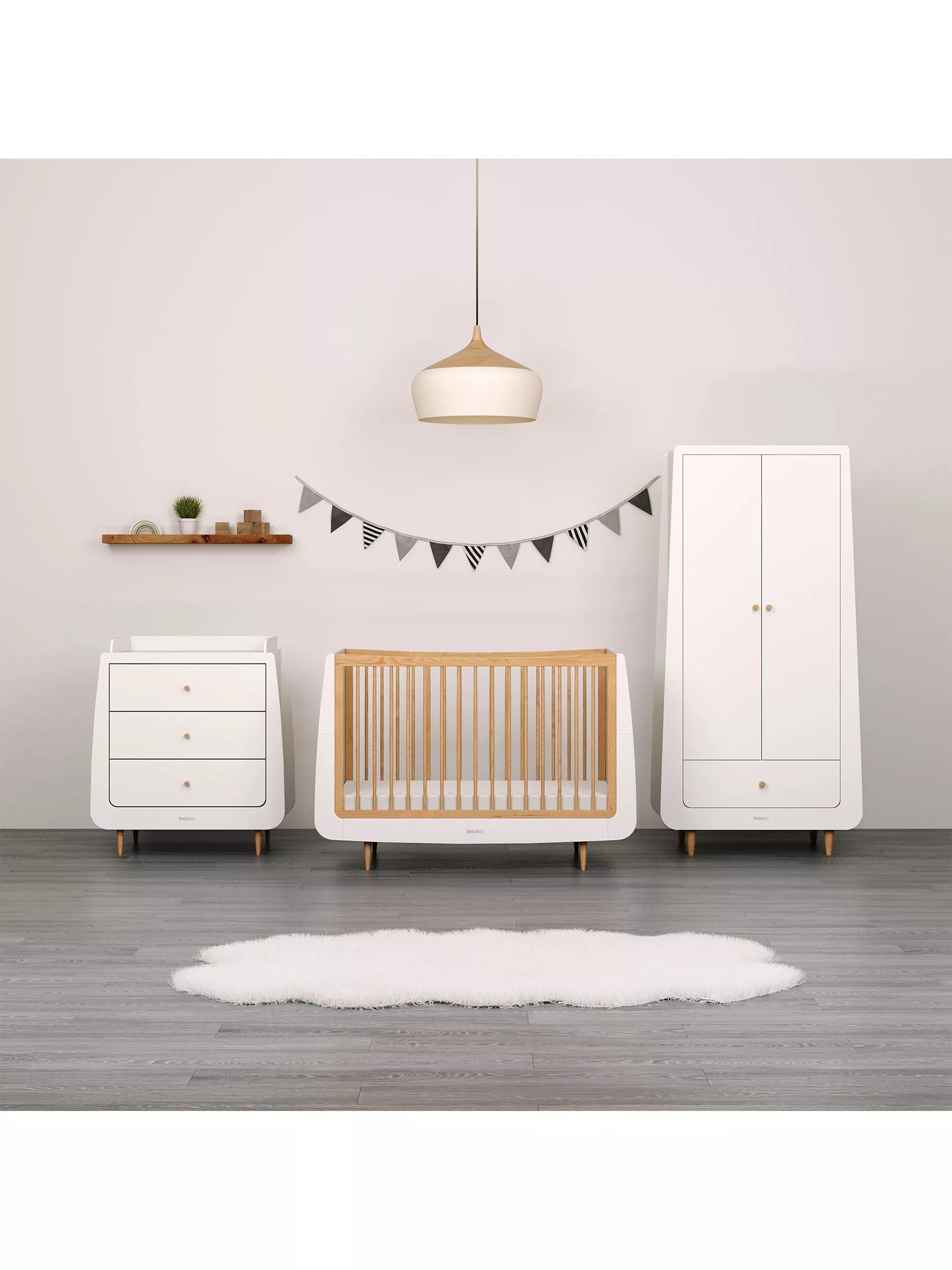Wardrobe: The SnuzKot Skandi Wardrobe is perfect for all your little one's storage needs. Modern and minimal, the SnuzKot Skandi Wardrobe boasts a spacious interior and features adjustable shelving and rails plus a large drawer perfect for bedding or essentials.