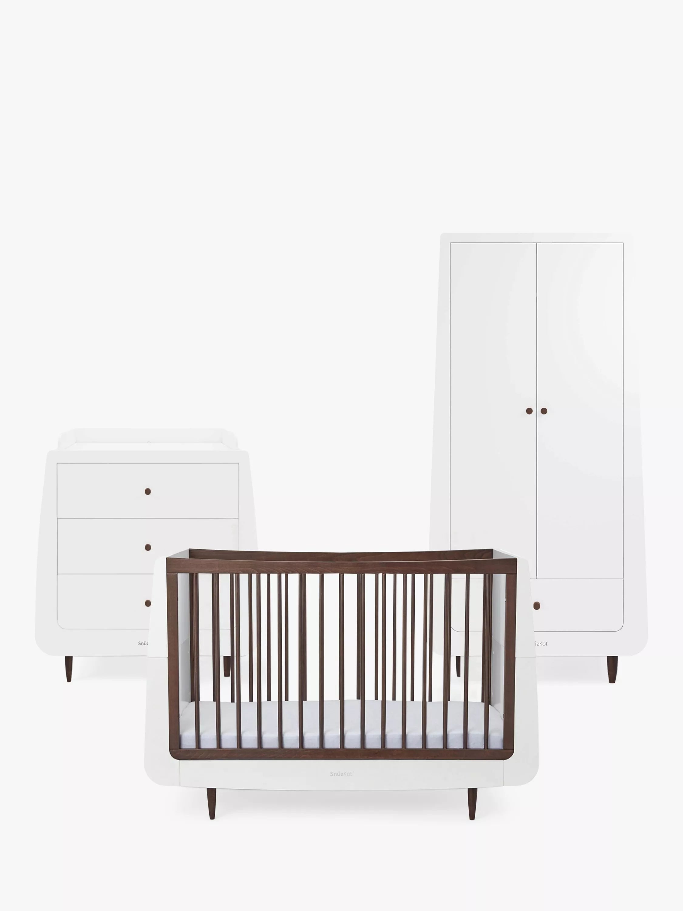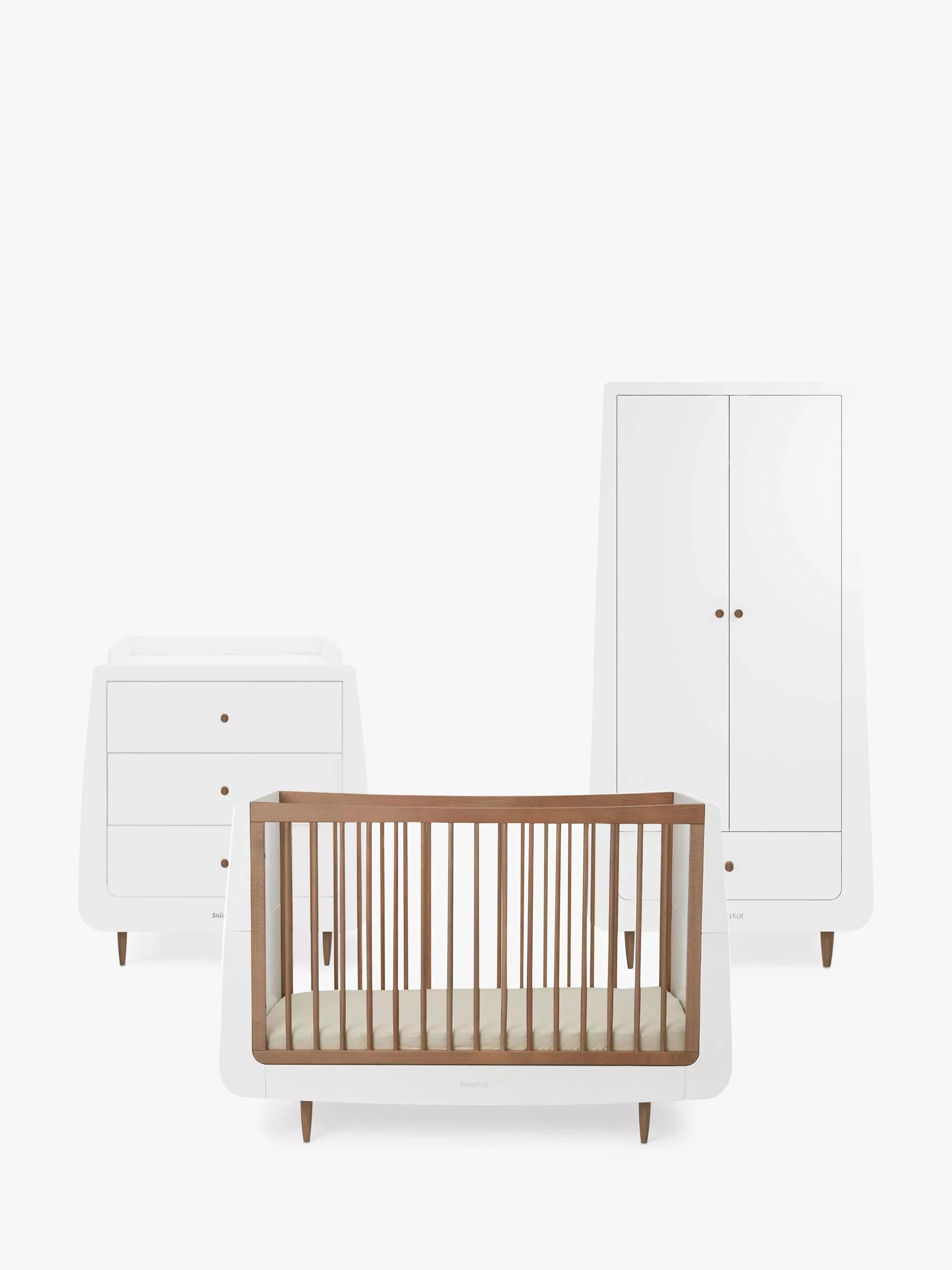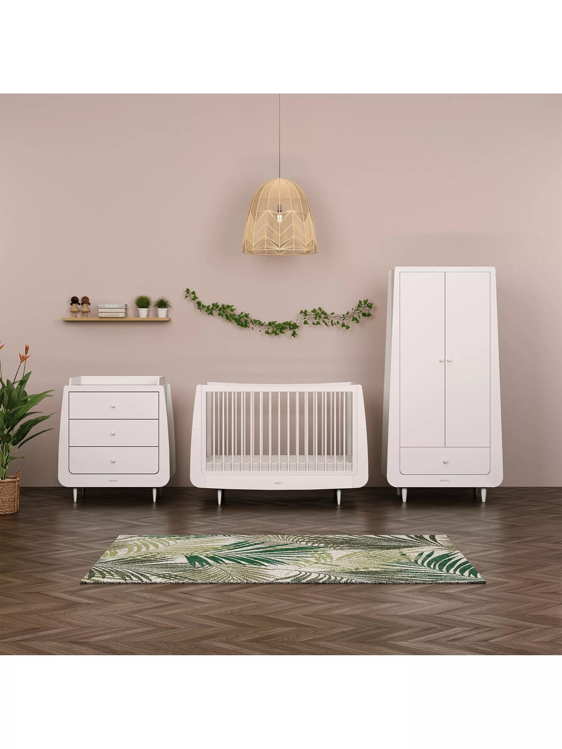 Wardrobe: The SnuzKot Skandi Wardrobe is perfect for all your little one's storage needs. Modern and minimal, the SnuzKot Skandi Wardrobe boasts a spacious interior and features adjustable shelving and rails plus a large drawer perfect for bedding or essentials.