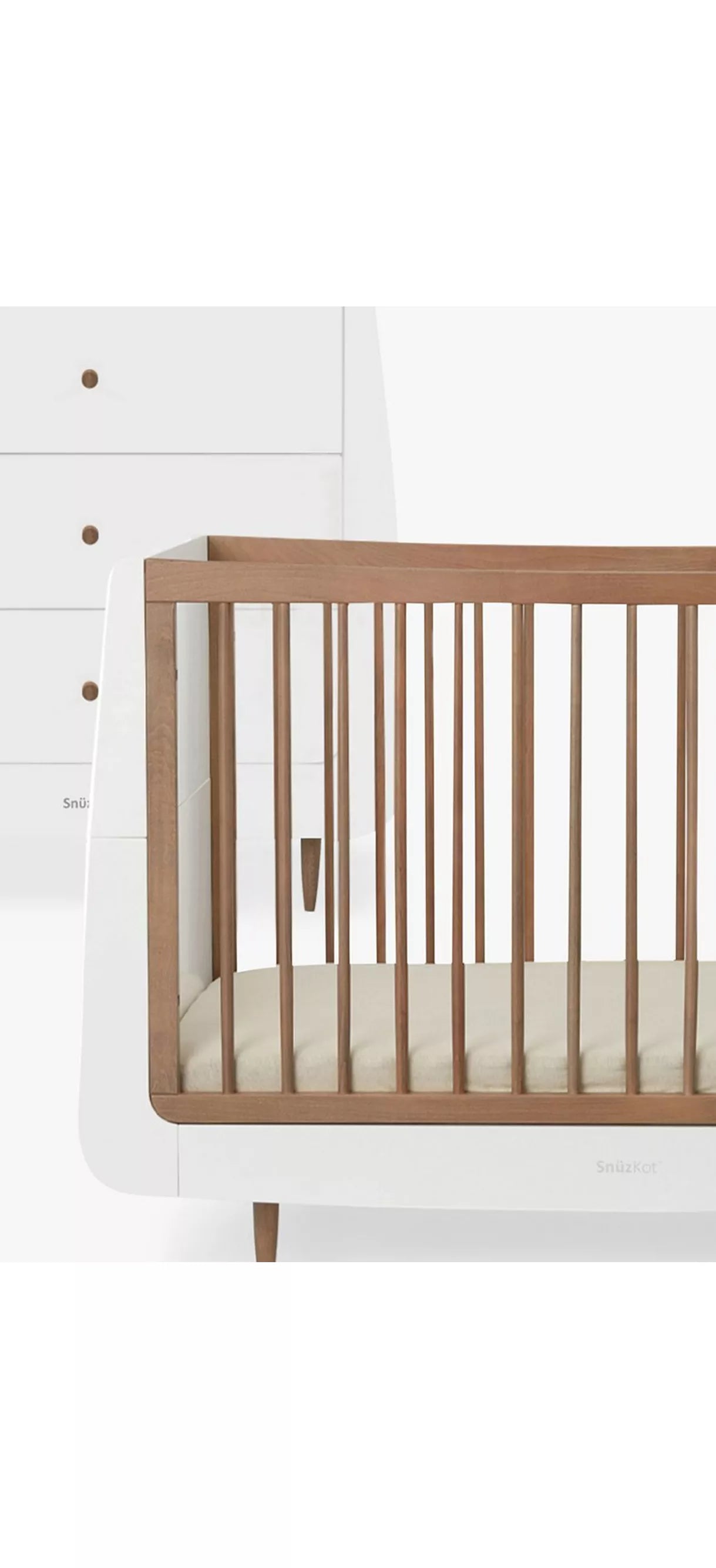 Cot: Designed to last, every SnuzKot is made using natural beech wood, without the use of MDF or veneer. The highest mattress position makes it easy to lift your newborn baby in and out, and as they grow and learn to sit and stand, the base can be lowered to help prevent them from climbing out.