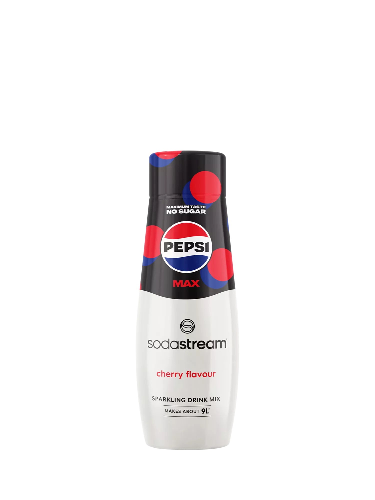 SodaStream Pepsi MAX Cherry is a low-calorie and sugar-free version of classic Pepsi Cherry. Each 440ml bottle makes up to nine litres of Pepsi MAX with your SodaStream fizzy drinks maker so you have plenty available to drink, taking up minimal storage space.