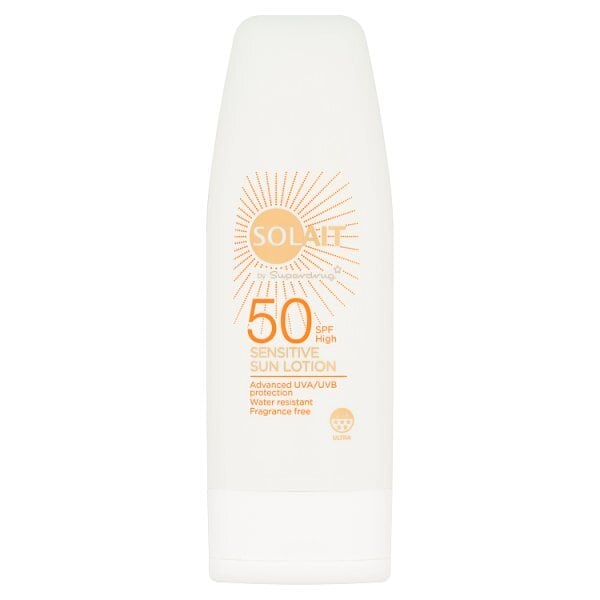 solait spf50 sensitive sun lotion is specially formulated with a combination of broad spectrum sunscreens to help protect skin against uva ageing and uvb burning rays with five star uva protection it helps to defend against suninduced skin damage and premature skin ageing