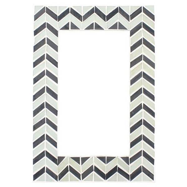 This Something Different mirror offers a distinct focal point for any modern interior space. Its classic rectangular profile is enhanced by subtle monochrome styling, ensuring versatility across various decor schemes in your home. The attractive chevron mosaic detailing provides subtle texture and visual interest to the piece.