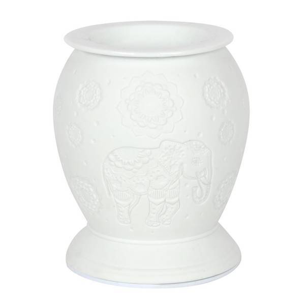Material: Ceramic. Height: 15.5cm. Width: 13cm. Depth: 13cm. Design: Elephant. Suitable for: All Wax Types, Diluted Fragrance Oil. Please Note: Fragrance Oil Not Included. Packaging: Boxed, Polyfoam.