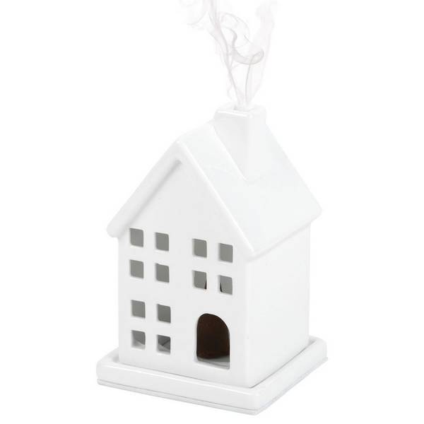 This attractive ceramic incense cone holder is shaped distinctly like a small house. It offers a decorative and stable resting spot for your favourite cone-style incense fragrances. Constructed entirely from robust ceramic material, this piece provides a sturdy base when in use.