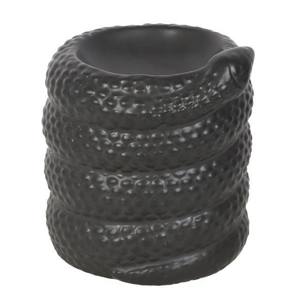 Material: Ceramic, Steel. Height: 12.3cm. Width: 11.5cm. Design: Snake. Suitable for: Essential Oil, Wax Melts. Depth: 11cm. Packaging: Boxed, Cardboard.