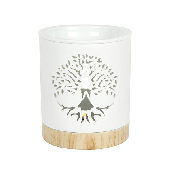 Material: Ceramic, Soy Wax. Height: 10.5cm. Length: 9.5cm. Width: 9.5cm. Fragrance: Sweet Cedar. Design: Cut Out, Tree Of Life.