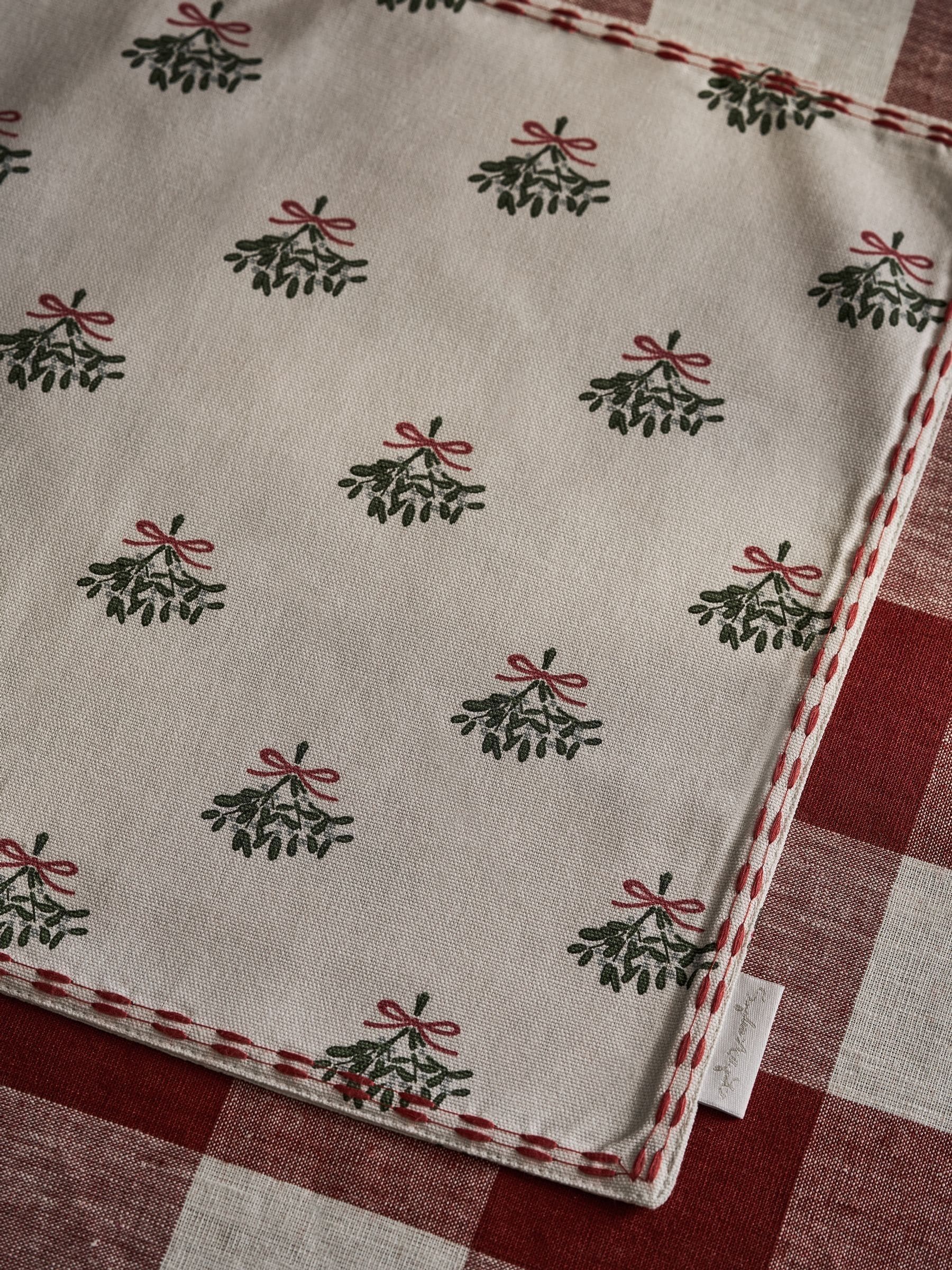 Sophie Allport OffWhite Mistletoe Embroidered Placemats Set of 2