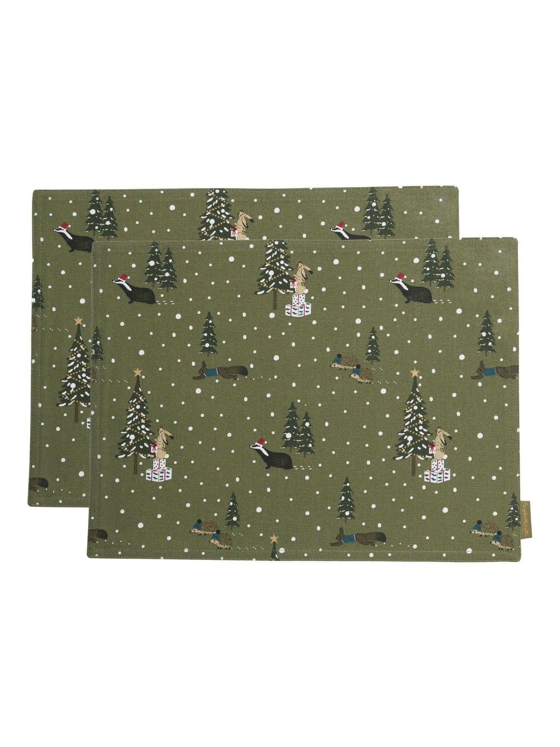 Add a charming touch to your table setting with these fabric placemats, which come as a set of two, featuring hedgehogs, badgers, hares, and squirrels in a snowy festive . A heartwarming design for the season, perfect for creating a magical festive table scape for your Christmas lunch. Set of 2 H 40 x W 30cm Made from 100% cotton Spot clean only Part of the Festive Collection Iron at medium temperature.