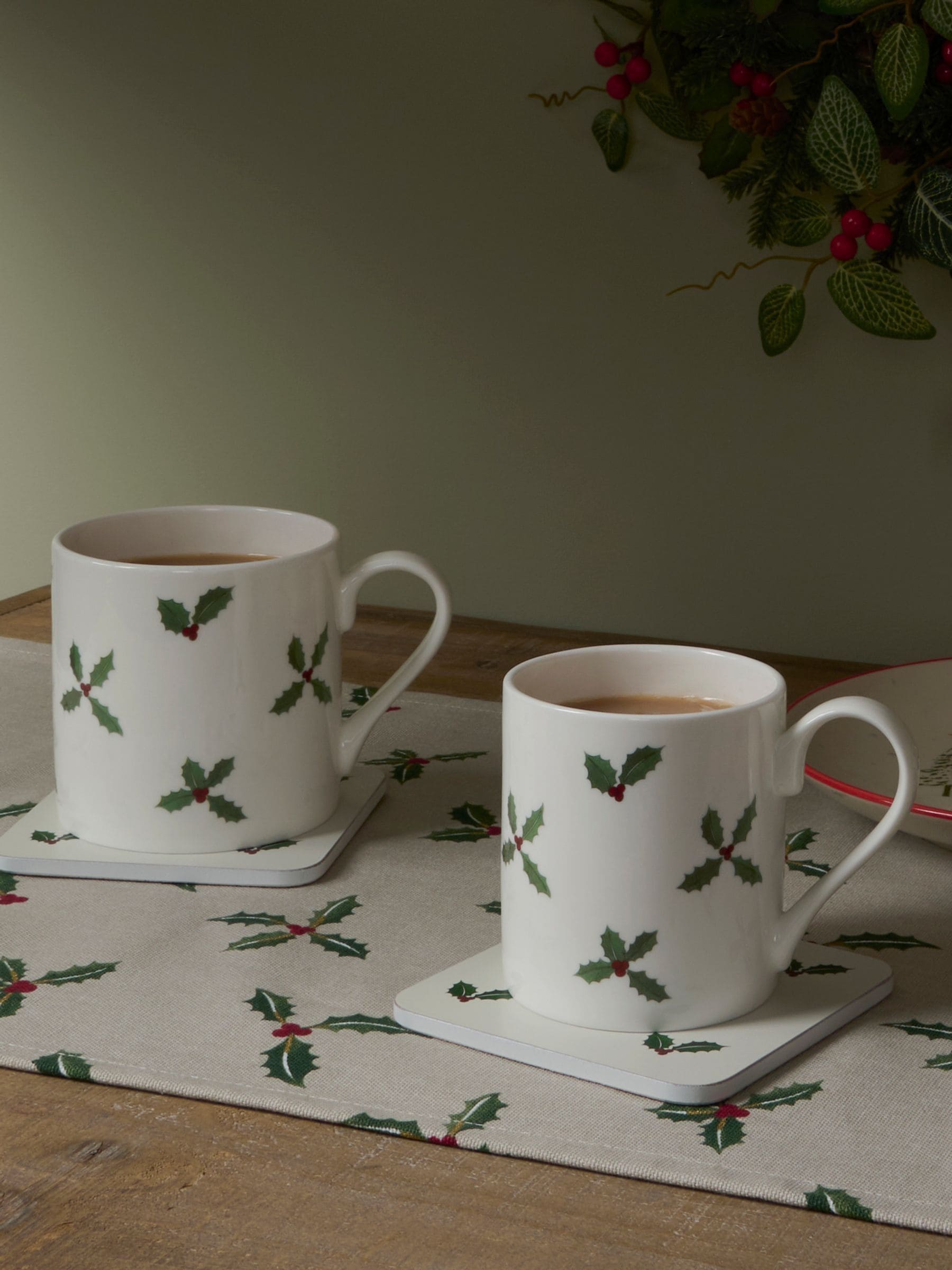 A timeless fine bone china mug adorned with traditional holly and bright red berries, making it a perfect addition to your festive kitchenware. It makes a lovely Christmas gift for coffee and tea drinkers. Large: 425ml (H 9 x W 12 x Dia. 9cm, including handle) Fine bone china Safe for microwave and dishwasher use Hand decorated and finished in the UK Beautifully boxed for gifting Part of the Holly & Berry collection with matching pieces available
