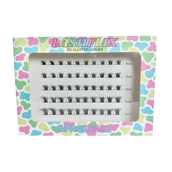- Do it yourself with Lashflix It's Lashflix & Chill O'clock! Say goodbye to expensive salon visits and hello to the convenience of applying your own eyelash extensions in the comfort of your own home. In just under 10 minutes, you can achieve the lash extension look that lasts for up to a week, all while keeping your natural lashes damage free. Our Lashflix 50 Cluster Lashes contain 5 different lengths ranging from 8mm to 16mm, allowing you to have complete control over the appearance of your lashes. You'll get at least 5+ fresh sets of lashes, plus Lashflix lashes are also reusable. Faux mink 50 D curl clusters Lengths 8mm