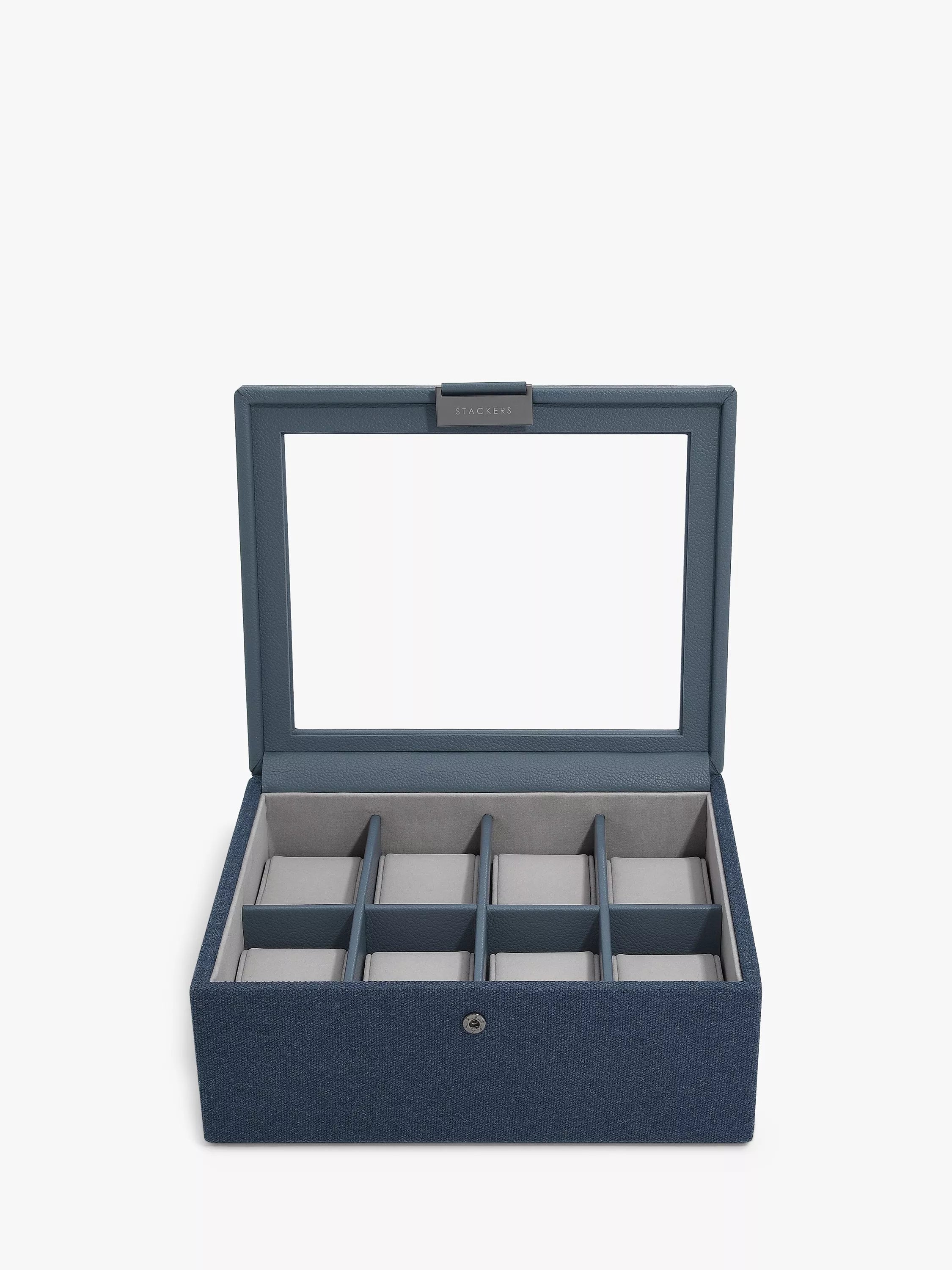 For the keen watch collector. Keep your watch collection organised and safe with one of our watch boxes. It features a clear glass lid, to keep your watches safe and visible, and soft watch pads, to ensure your watches stay scratch and dust-free. With a canvas and faux leather exterior for a contemporary and stylish look.