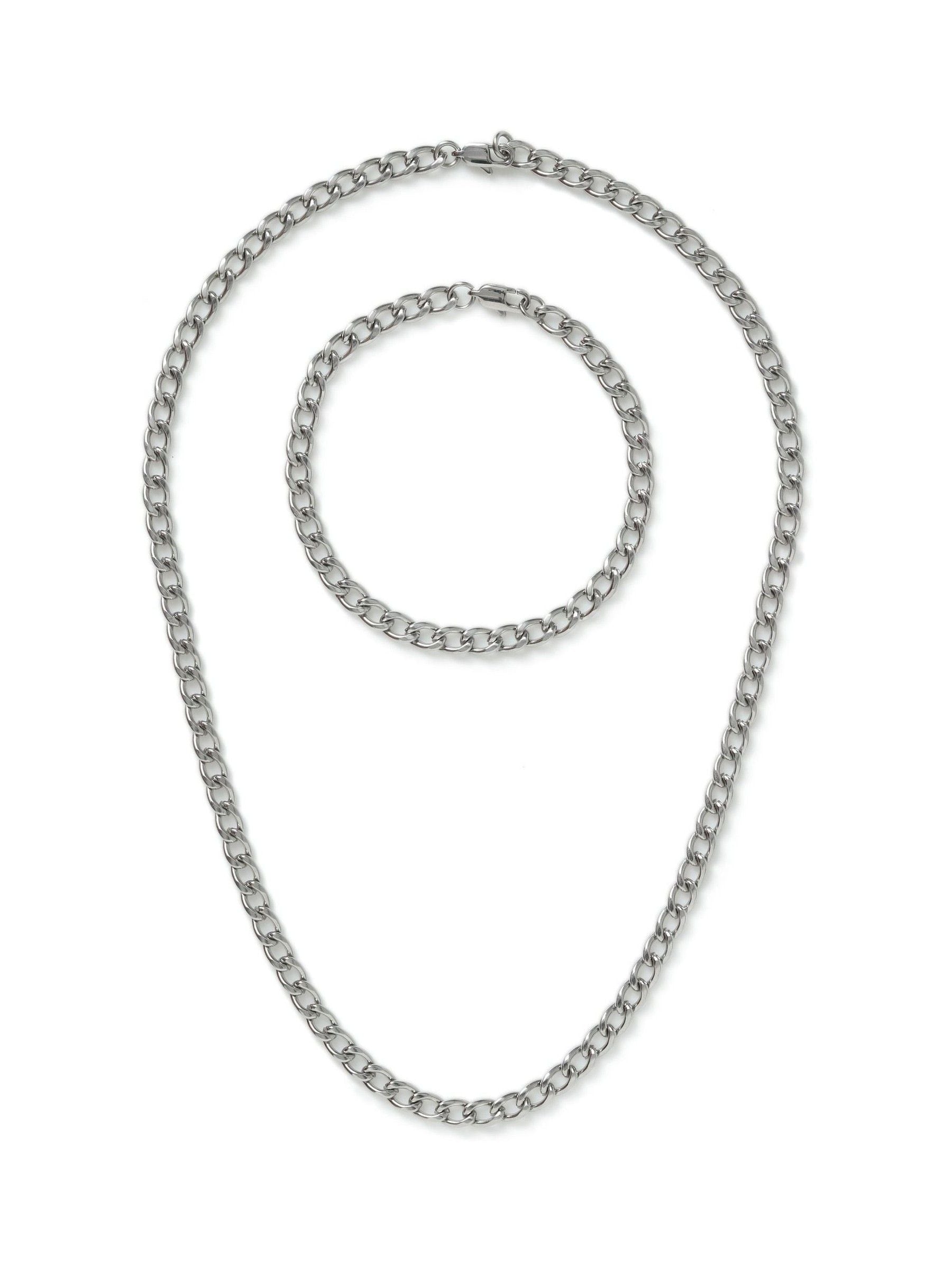 Stainless Steel Curb Chain Necklace and Bracelet Gift Set