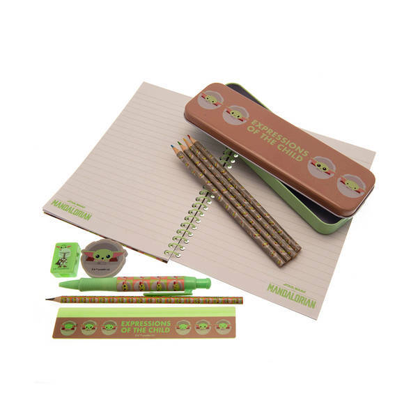 This bumper 11-piece Star Wars stationery set brings the popular character, The Child (Grogu), to essential school supplies. The collection offers everything needed for creative writing, drawing, and practical organisation. Featuring vibrant graphics from The Mandalorian series, this set is highly appealing to young fans of the franchise. Keep supplies neat with the included storage tin.