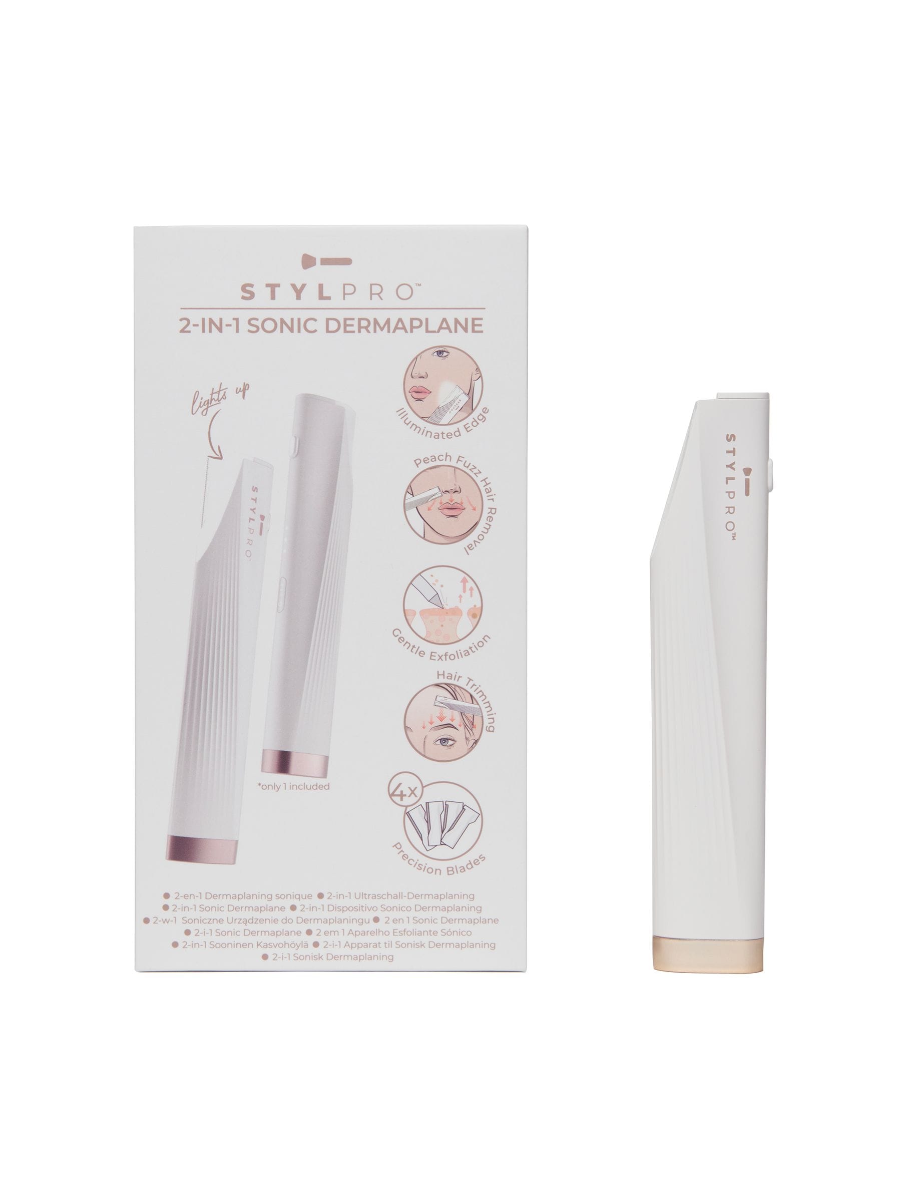 The STYLPRO Light Up Sonic Dermaplane uses sonic vibrations to ensure a closer dermaplane to the skins surface, while the LED light ensures no hairs are missed.