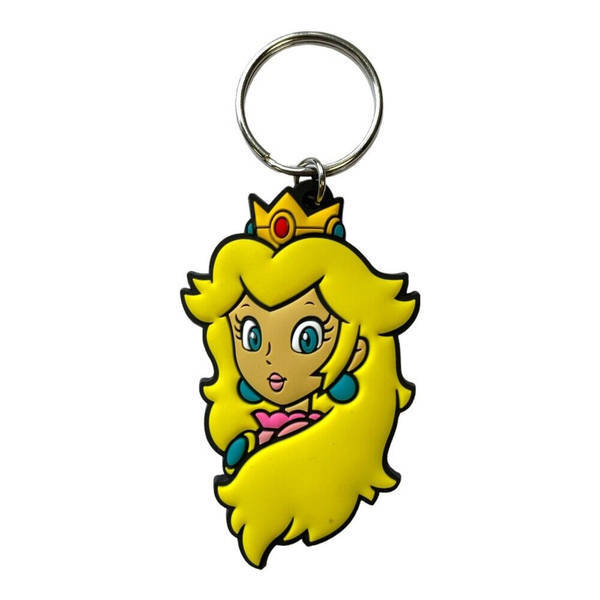 This officially licensed Super Mario Princess Peach Keyring is a desirable collectible accessory suitable for any dedicated fan. It is constructed from a reliable combination of metal, PVC, and rubber materials, ensuring a durable and tactile feel for everyday handling and display.