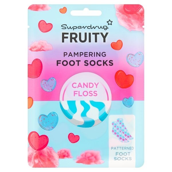 Superdrug Candyfloss Foot Socks will leave feet feeling instantly moisturised and hydrated. This sweetly scented lotion will leave feet soft and smooth without feeling greasy or sticky. A perfectly pampering treat for your feet.