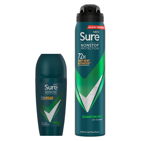 includes sure men antiperspirant deo aerosol nonstop quantum 250ml sure men antiperspirant deo roll on nonstop quantum 50ml