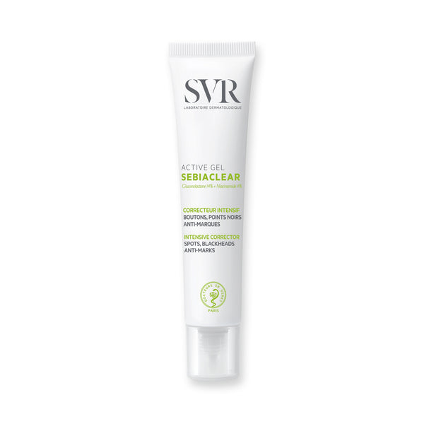 This intensive SVR SEBIACLEAR gel-cream provides targeted action against active acne and existing skin imperfections. It specifically addresses multiple concerns, including active breakouts, congestion, inflammation, and residual marks left from previous blemishes. The formula is designed to support a clearer complexion.