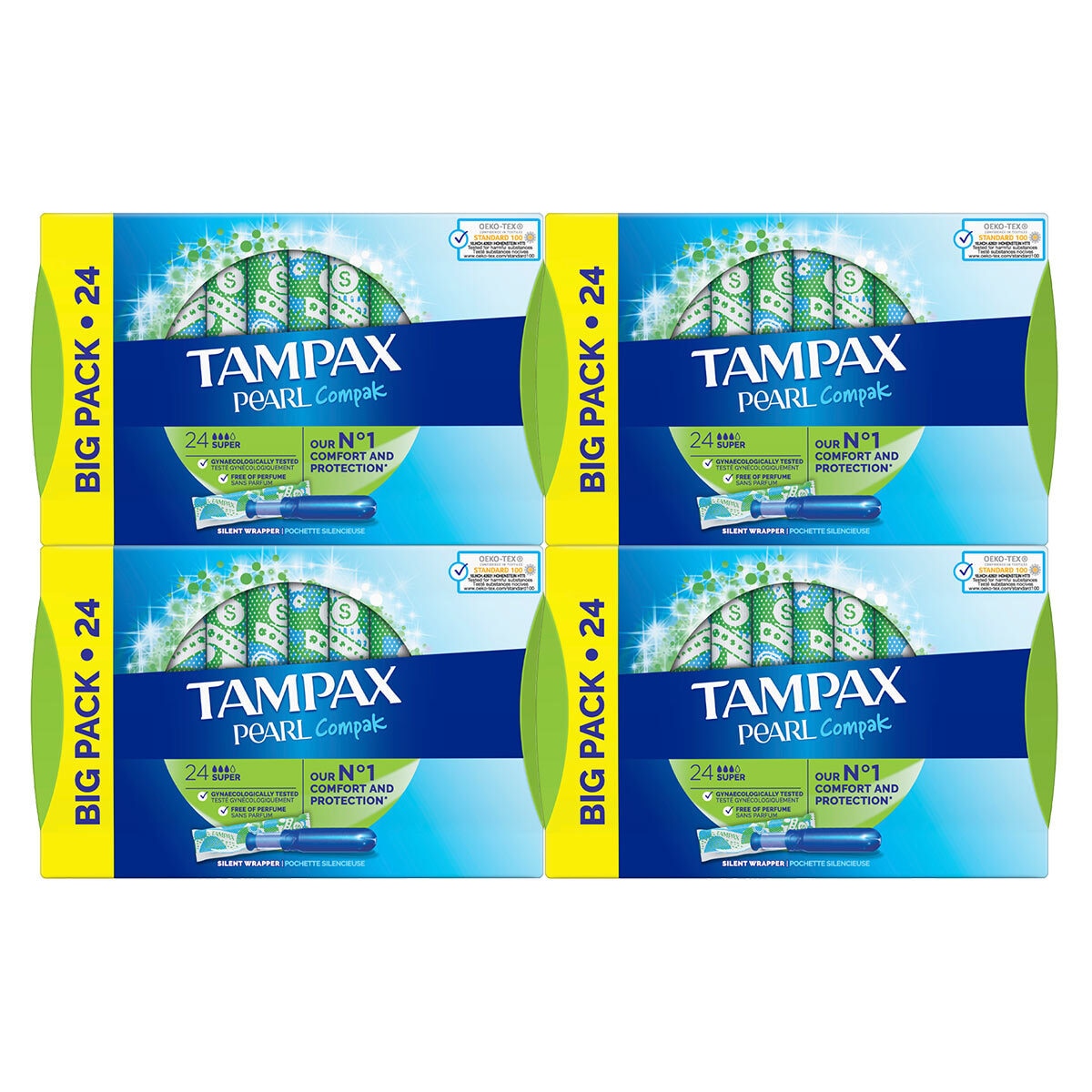 Tampax Pearl Compak tampons offer comfort, protection and discretion. They are free from fragrances and come with a compact and discreet smooth plastic applicator and rounded tip for comfortable insertion. Its contoured Anti-Slip Grip makes the applicator easy to hold and position. Tampax Pearl Compak has MotionFit technology that gently expands to fit your body’s unique shape. Additionally, there is a LeakGuard braid that helps stop leaks before they happen. Tampax Pearl Compak have bold and colourful wrappers that are easy to open, purse resistant and open silently for full discretion, offering super absorbency. Tampax Pearl Compak tampons have been gynecologically tested and have also been independently tested for harmful substances by Oeko-Tex.