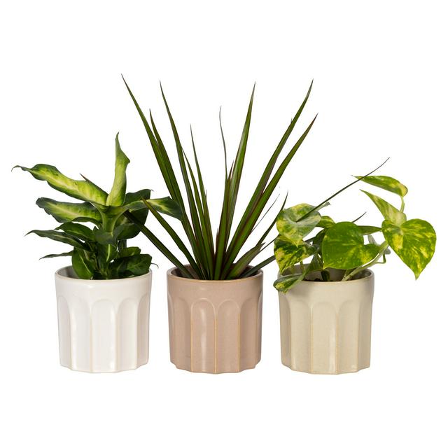• Includes three unique species, likely Pothos, Dracaena, and Dieffenbachia, for variety.