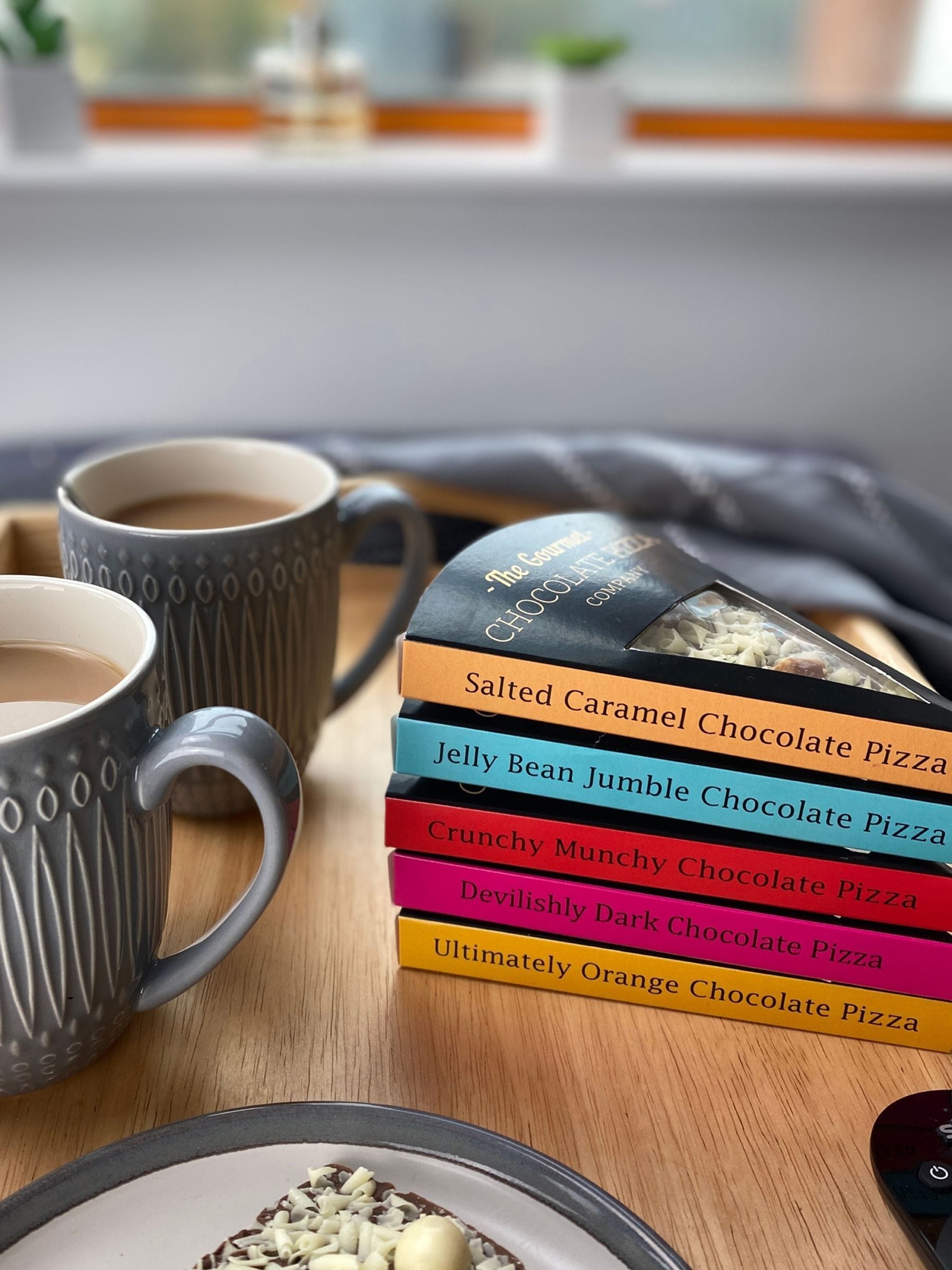 Indulge your sweet tooth with our delicious assorted pack of individual chocolate pizza slices! 4 slices are made with Belgian milk chocolate and premium toppings and one is a dark chocolate slice these all come in 5 different flavours. The slices with a milk chocolate base have a range of confectionary, brownie biscuit, crunchy chocolate coated rice ball toppings and more. The dark chocolate slice has vegan mallows dotted on the top and finished with dark chocolate swirls. Whether you're shopping for a birthday, anniversary, or just because, this assortment of pizza slices will tickle the taste buds.