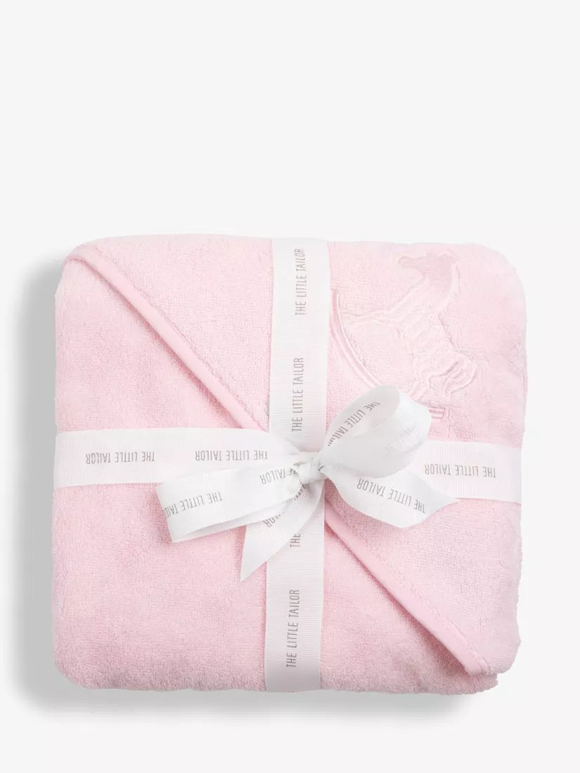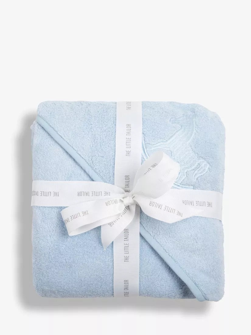Keep baby snuggly and warm after bathtime with this super soft cotton hooded bath towel. Made from highly absorbent and quick drying terry towelling, with rocking horse embroidery on the hood. It comes ribbon wrapped, so makes an ideal gift.