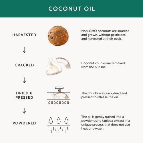 Coconut oil, Tapioca extract*, Co-enzyme Q10, Black pepper extract (piper nigrum root), Nutritional yeast¹ providing Vitamin B12. Capsule (Vegetable cellulose). *Non-GMO plant extract used to turn oil into powder. ¹An inactive and non-candida yeast.