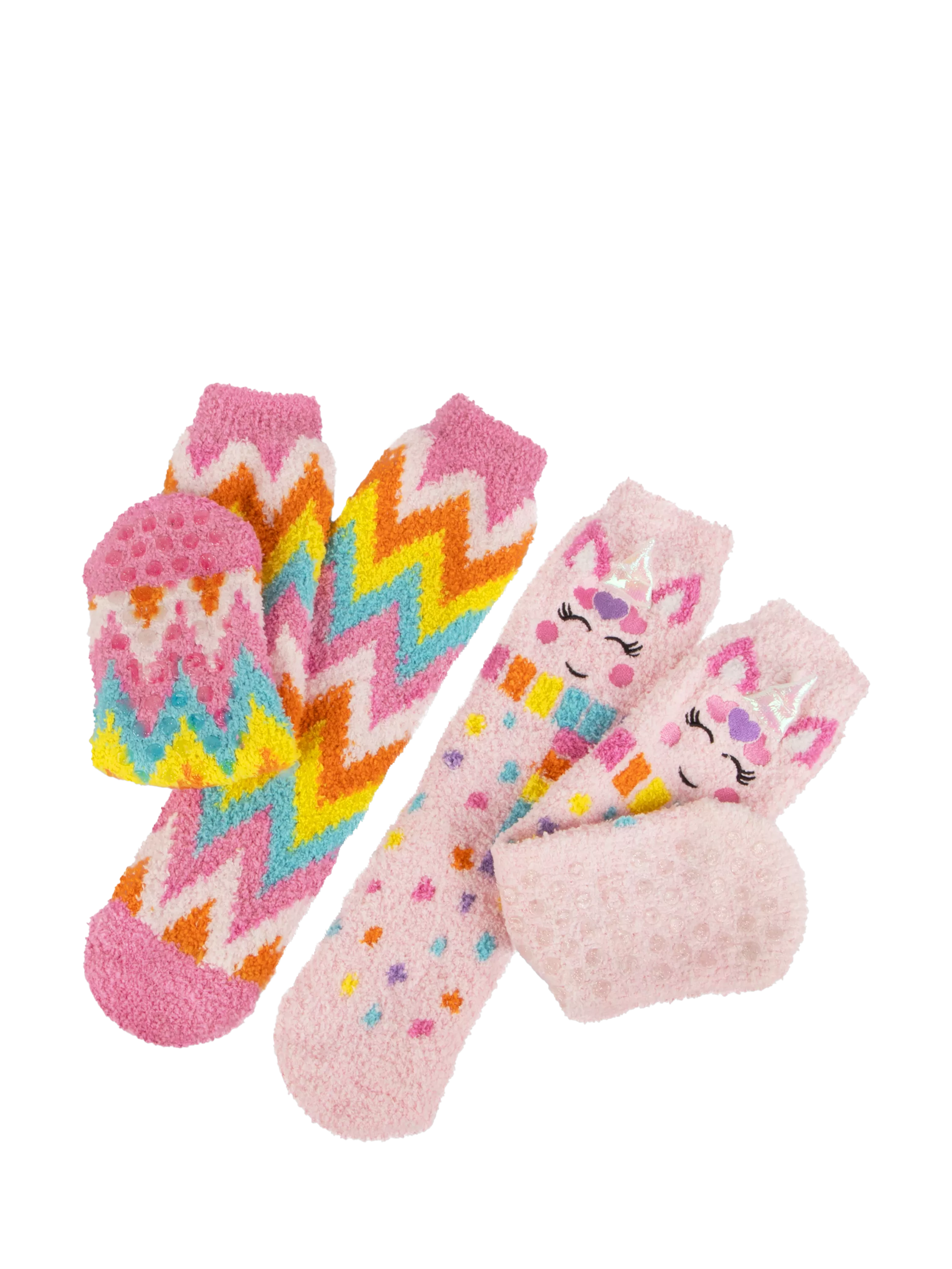 Keep little feet cosy and stylish with this adorable two-pack of kids' slipper socks! Featuring playful unicorns and zig-zag stripes, these socks are perfect for keeping toes warm after bath time or on chilly mornings. These comfy socks are a great addition to any child's wardrobe.