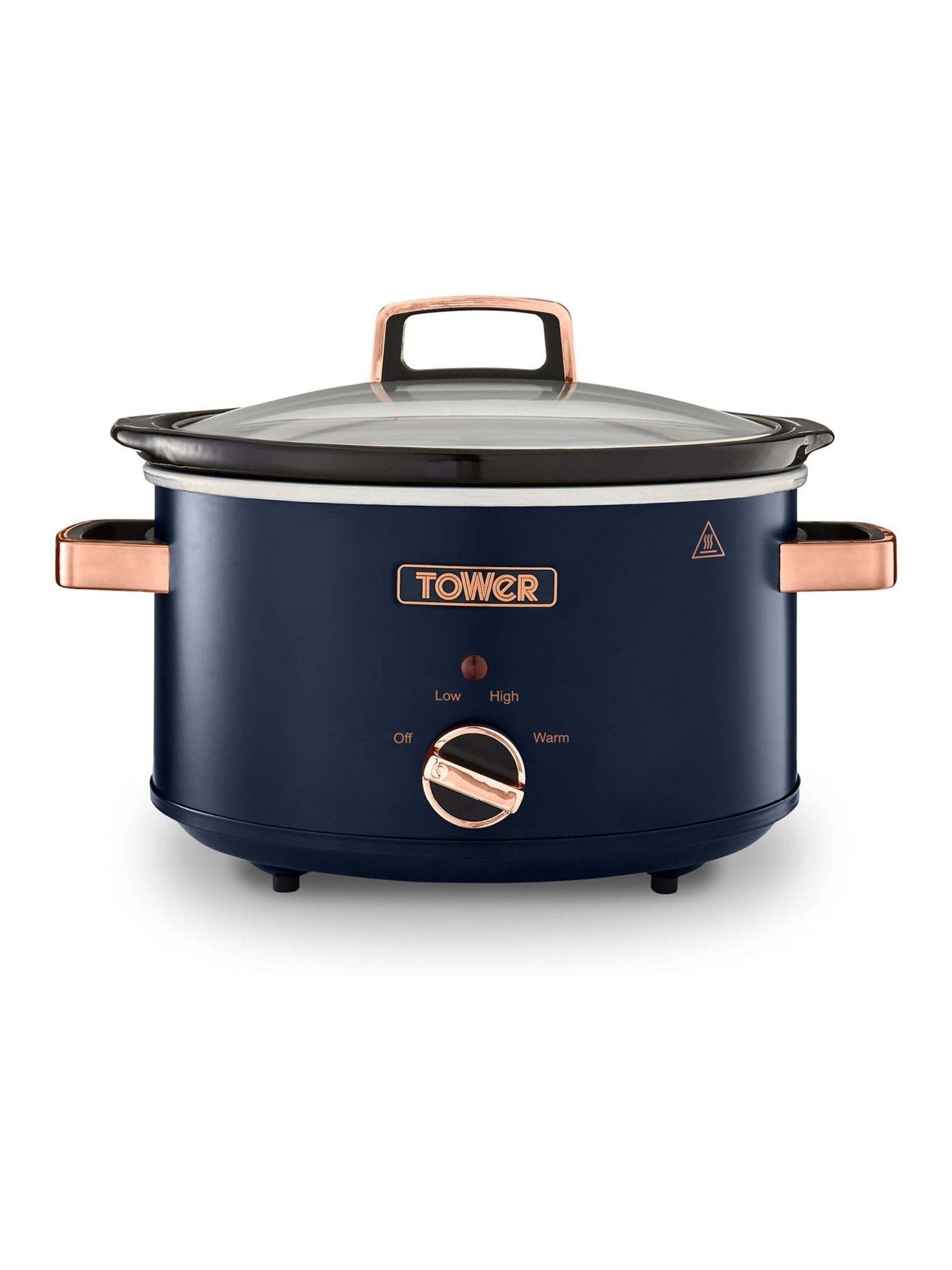 Large 3.5L capacity ideal for serving 4-5 people. Three heat settings to suit your ingredients and preferred time. Tough glass lid for easily monitoring food. Removable crockpot for easy and convenient table top service. Easy to use dial and power indicator light. Easy clean dishwasher safe pot. Elegant rose gold accents. Cool touch handles for added convenience and safety. Item dimensions: H21.50cm x W33.50cm x D26.00cm. Product Packaging: Full colour box