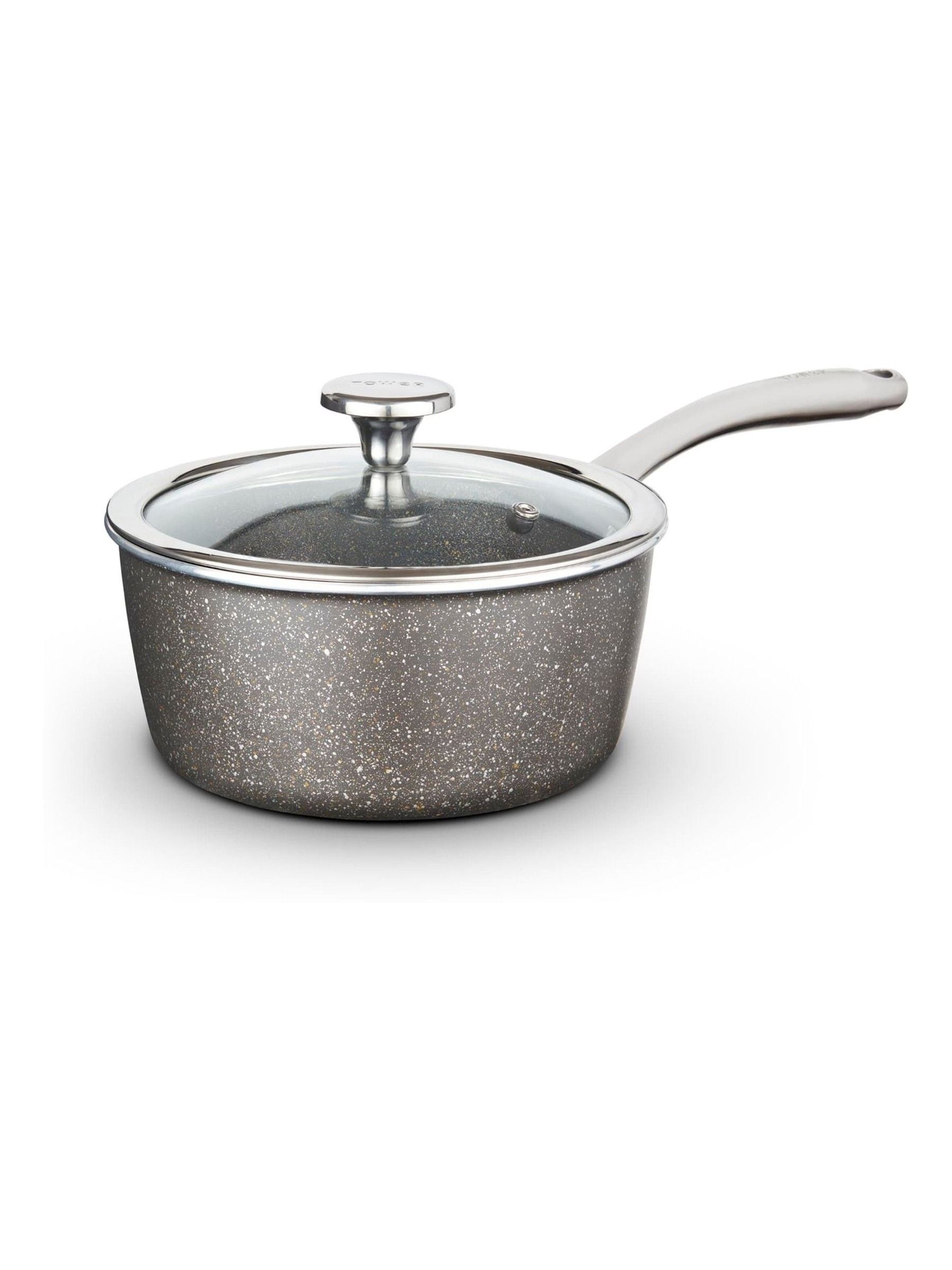 Create deliciously healthy fat-free meals with this 22cm Saucepan, ideal for cooking pasta dishes or soups, complete with a tempered glass lid to seal in the flavour. Featuring high-grade non-stick technology, the Cerastone Pro coating is 15x stronger than other non-stick coatings, and is PFOA, PTFE, PFAS, lead and cadmium-free, so you can enjoy healthy meals using little or no oil. This saucepan is crafted with a high-quality, long-lasting forged aluminium body, enabling quick and easy adjustment of temperatures for efficient cooking results, complete with a riveted steel handle for comfortable control when cooking. A bonded steel base provides even heat distribution to ensure food is cooked thoroughly, and is compatible with any hob type, including induction. The non-stick coating prevents food from sticking to the surface, and this saucepan is dishwasher safe for an easier clean. Collect the full Cerastone Pro range for all your best-loved dishes, with 100% recyclable product and packaging.. SUPERIOR NON-STICK COATING: Cerastone Pro non-stick coating is 15x stronger than standard non-stick coatings. 4 layers of natural coatings are individually applied to each pan, guaranteeing superior food release and easy cleaning with every use. Little to no oil is required when cooking for healthier, virtually fat-free cooking. INDUCTO™ BONDED STEEL BASE: The Inducto™ bonded steel base heats the pan 25% faster than standard induction bases, saving on time and energy. Its unique structure also ensures even heat distribution across the entire pan surface for superior cooking results and ensures no more hot spots. Our Inducto™ induction-ready bonded steel base is suitable for all hob types. HEAVY GAUGE CONSTRUCTION: Cerastone Pro pans are built to last, crafted from ultra-tough 4mm forged aluminium with an Inducto™ base to ensure even heat distribution when cooking. Metal utensils can be used with Cerastone Pro pans, with no risk of scratching, whilst they are safe to clean in the dishwasher. PREMIUM RIVETED STEEL HANDLES: Handles are extra-long for added comfort and are also made from riveted steel for extra strength. The steel handles mean that Cerastone Pro saucepans are safe to use in the oven to temperatures of 220 °C. 25-YEAR GUARANTEE: Trusted Tower quality with a standard 1-year guarantee and optional 24-year extension, subject to product registration online.