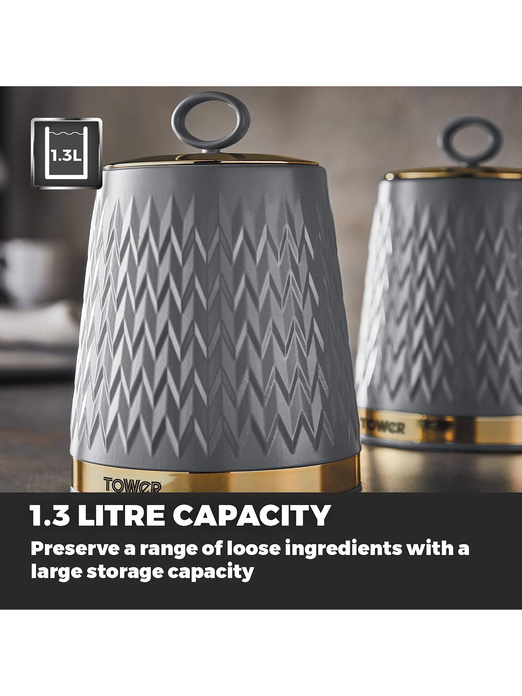 Tower Set of 3 Grey Empire Storage Jars